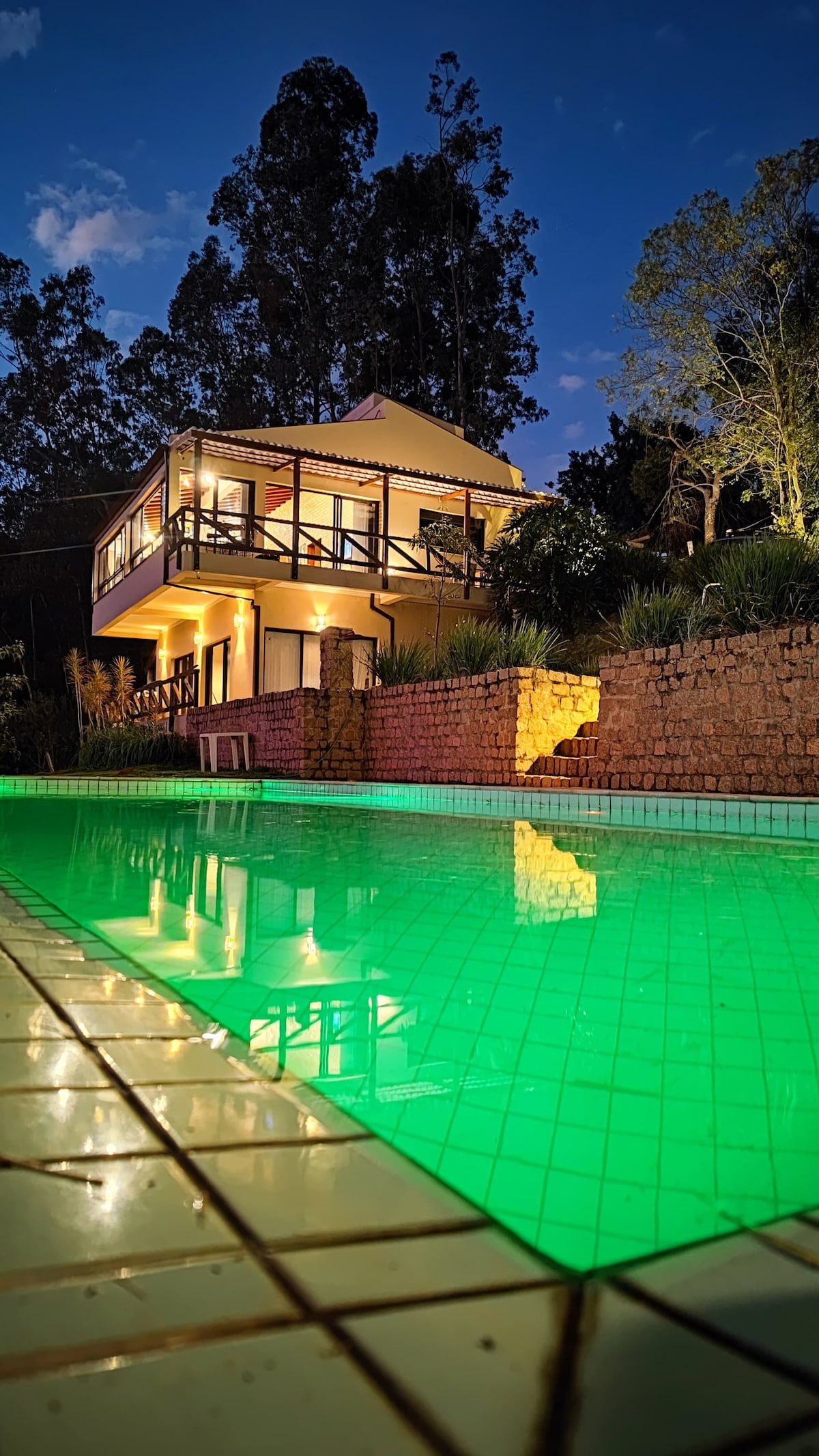Venha desfrutar de deliciosos momentos com toda sua família. Garantimos uma cozinha super equipada!Em meio as montanhas no vale das Aguas.Paz e natureza possibilitarão momentos inesquecíveis! Contato com animais,piscina, jacuzzi ,decoração moderna,aconchegante e com todo conforto,camas de primeira em nossa casa de campo. Durante a semana você poderá fazer seu home office pois nossa internet é ótima! Estamos a 5 km do centro! Quartos com ar/condicionado e Piscina climatizada eNÃO tem Pernilongo