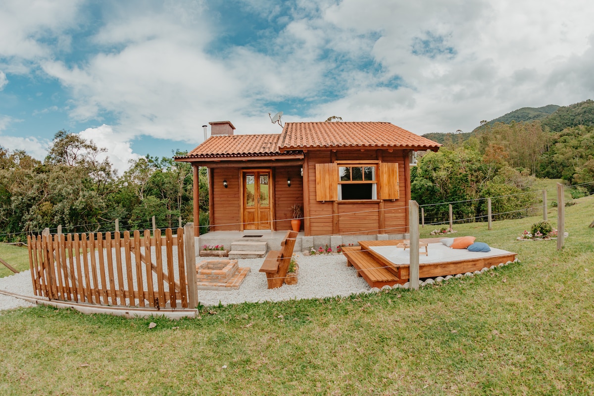 Chalé Casal no Sítio Vale Encantado. Inspirado em casas compactas "Tiny House", o chalé traz para você e seu acompanhante tudo o que é necessário para relaxar em meio a natureza, cheio de charme e com uma vista incrível! Localizado no Sítio Vale Encantado, em um dos locais mais tranquilos e belos da região. Próximo de vários pontos turísticos, como por exemplo a Serra do Rio do Rastro. O chalé conta com toda a estrutura para receber até 3 pessoas. Venha viver essa experiência!