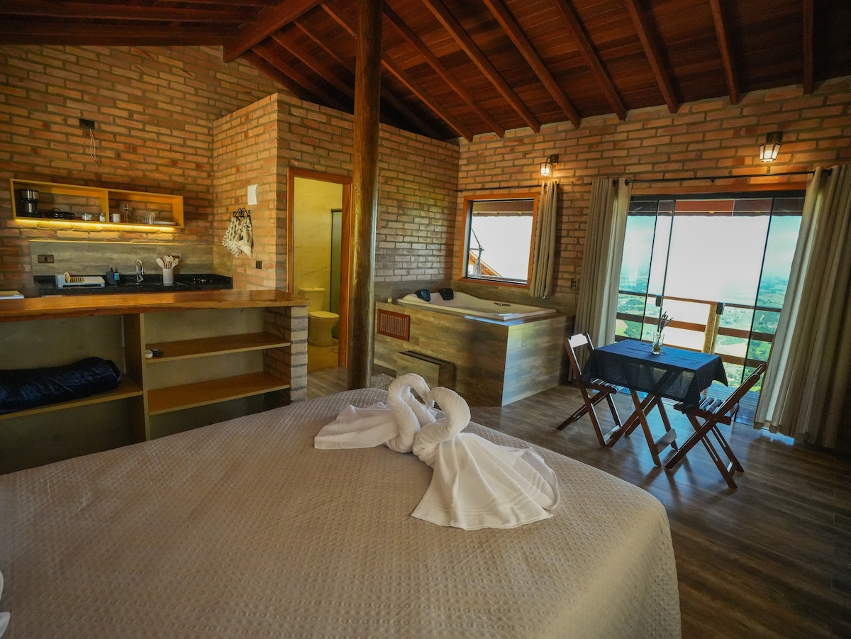 Refúgio romântico na Serra com vista incrível para as montanhas! Curta o pôr do sol na jacuzzi aquecida ao ar livre, ao som de uma cachoeira. Chalé exclusivo, aconchegante e completo, ideal para casais que buscam descanso, privacidade e conexão com a natureza. Próximo ao Corredor Turístico do Rio do Peixe e esportes de aventura. Viva momentos inesquecíveis no Chalé Mirante do Rio!
