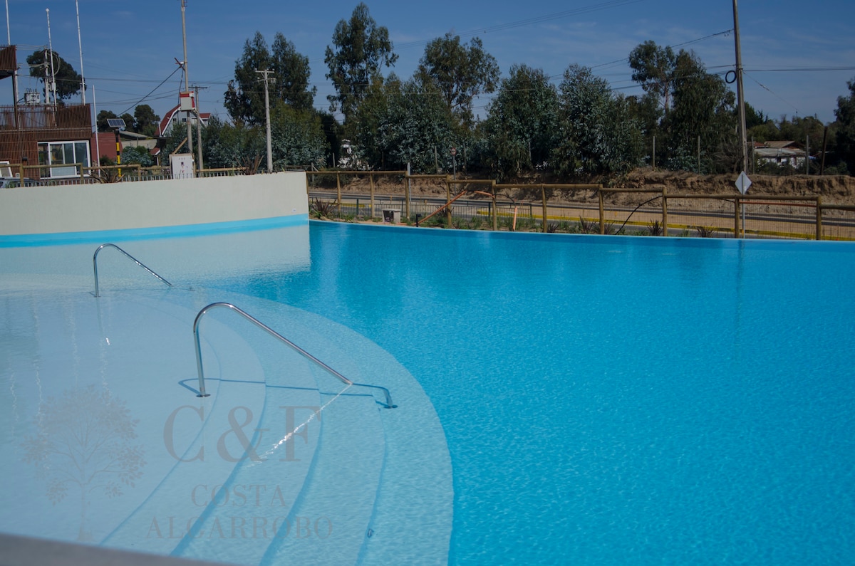 Toallas y Sabanas no incluidas, por higiene Estacionamiento Subterraneo. Depto de 2 Dormitorios con IPTV con Full Canales HD - Mallas de Seguridad - Wifi Fibra Optica. Agua Purificada Hola! Nuestro depto consta de 2 dormitorios y está ubicado en un segundo piso con vista libre a la nueva piscina de la laguna ( mucho más tranquila). Depto muy tranquilo ya que está separado de las otras 5 torres. Es especial para familias con niños pequeños por la cercanía visual con el área de la piscina