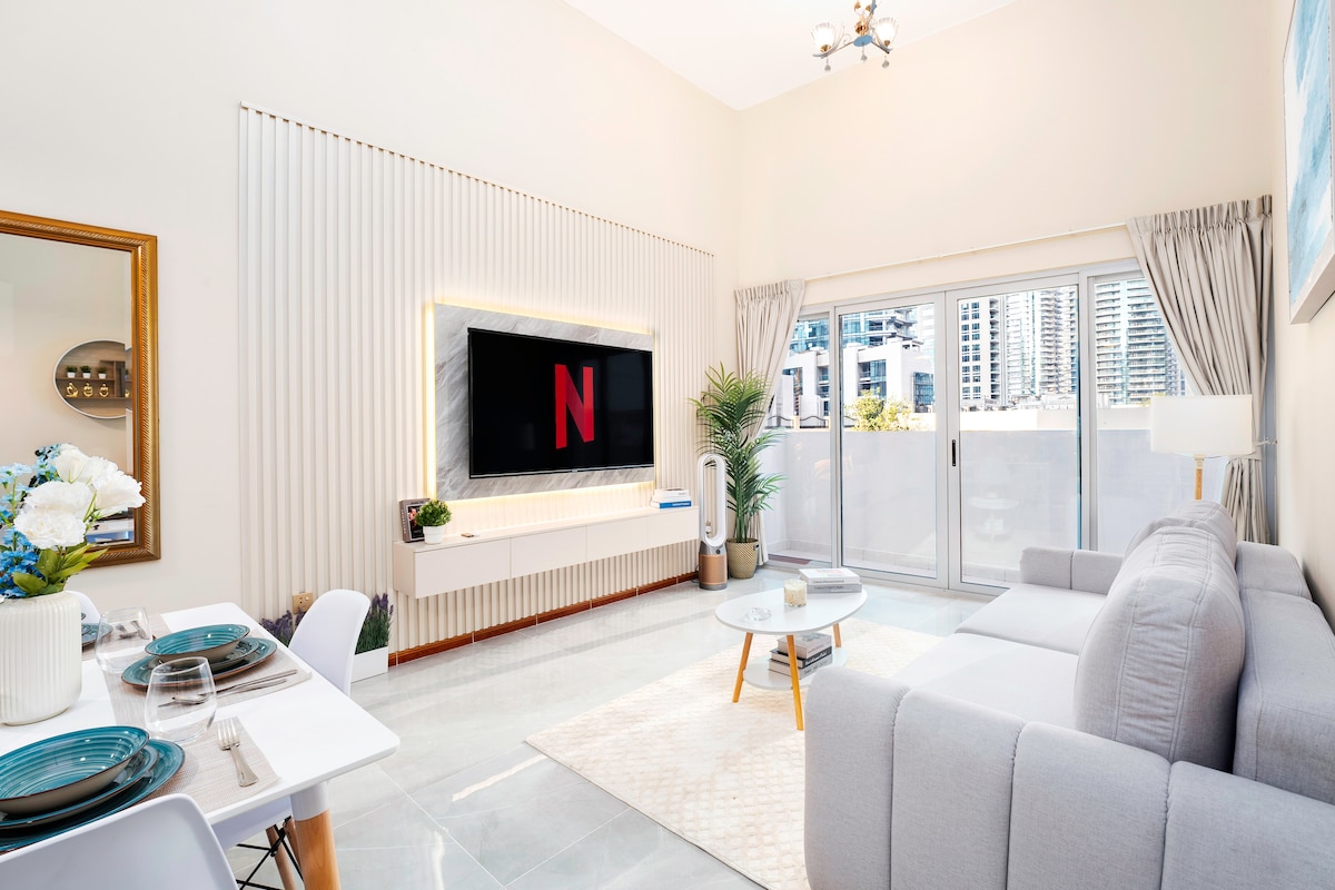 Step into luxury at our gorgeous, high-end entire Apt in Meydan, Dubai. Designed for Digital Nomads and Travellers, this Photogenic gem offers ultimate comfort and style. Just 10 min. from Dubai downtown and Dubai mall, and 20 min. from both Dubai Int. Airport and Dubai Marina, you’re perfectly positioned to explore the city’s TOP attractions. With modern designer furnishings and thoughtful decor, it’s a stunning backdrop for your Dubai adventure. Available for daily or monthly stays.