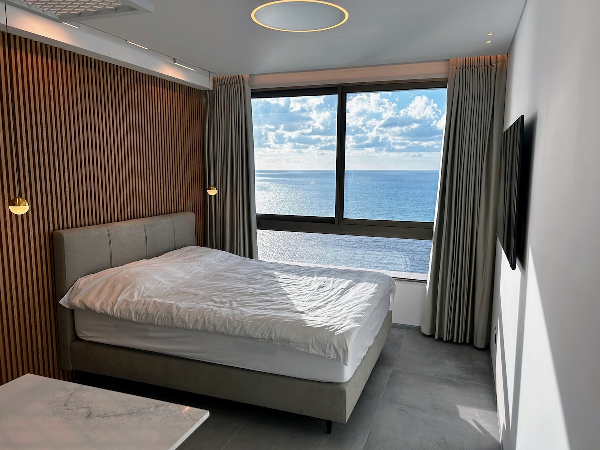 Welcome to a renovated Seafront Above the Beach Studio, Where stunning sea views, sunsets, and the sound of waves await you. This Studio offers top-notch modern design, 15min walk from the Kikar and public beach entrance, In the building - Supermarket, Free Parking, Buffet/Restaurants,Shabbat elevator. A perfect Cozy choice for couples. Photos are Genuine.