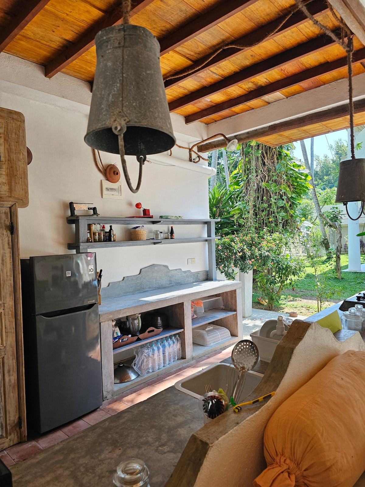 A European owned, self catering beach house in a secluded bay in Thalaramba, just minutes from lively Mirissa and offering stylish accommodation. Perfect for a couple in the master bedroom and the newly revamped second bedroom has twin single beds for 2 children or 2 single adults. Tastefully decorated in Sri Lankan colonial style with separate sitting room and well equipped kitchen. Fibre wifi connection with 100 mbps for those working as digital nomads. There is NO AC but with fans.