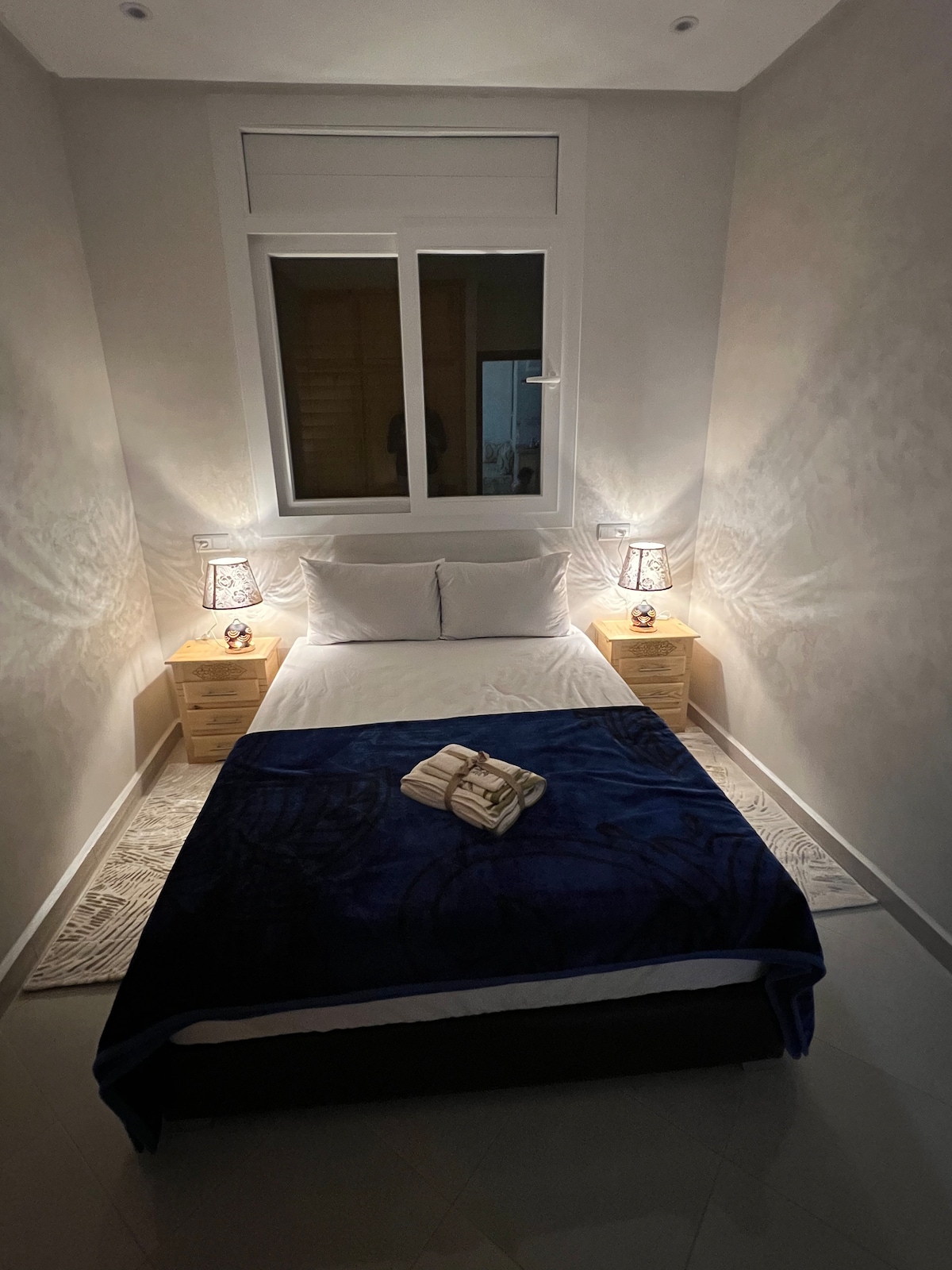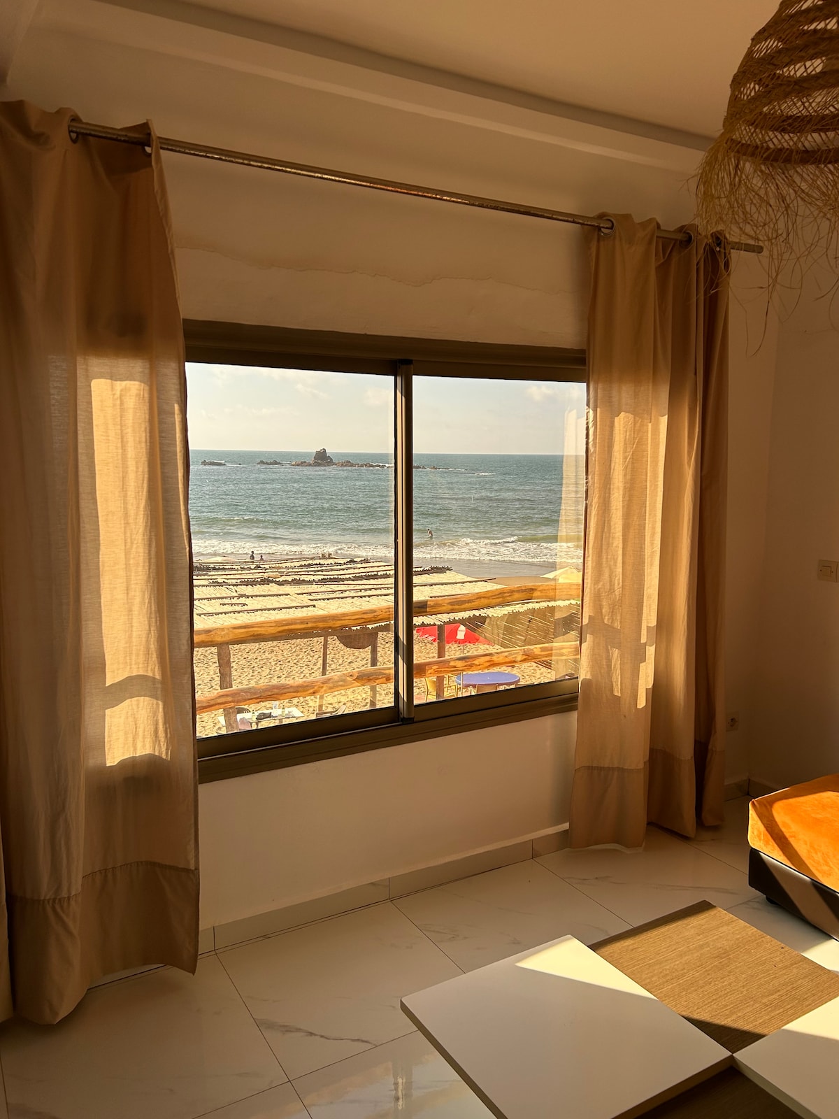 Vivez une expérience unique dans cet open space chic et bohème, situé directement sur la plage de Legzira. Deux lits confortables, un salon cosy, une table à manger élégante, salle de bain effet marbre… le tout baigné de lumière naturelle avec une vue imprenable sur l’océan. Chaque détail, du décor aux matériaux, crée une atmosphère chaleureuse et raffinée. Le son des vagues, les couchers de soleil et l’accès direct au sable font de ce lieu un havre rare et inoubliable