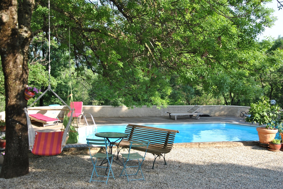 Vercors Sud, between the mountains and Drôme Provençale, an immersion in the heart of nature in isolated site. Last 2km unpaved road. Warm and comfortable house, located altitude 500m, 150m from the owner's house, composed of, 1 room with a double bed, another with a double bed and 2 single beds, equipped kitchen with wood stove, living room with fireplace, and 1 bathroom. Many activities nearby: hiking, mountain biking, climbing, swimming in the river, Omblèze gorges, Gervanne, Drôme, Roanne...