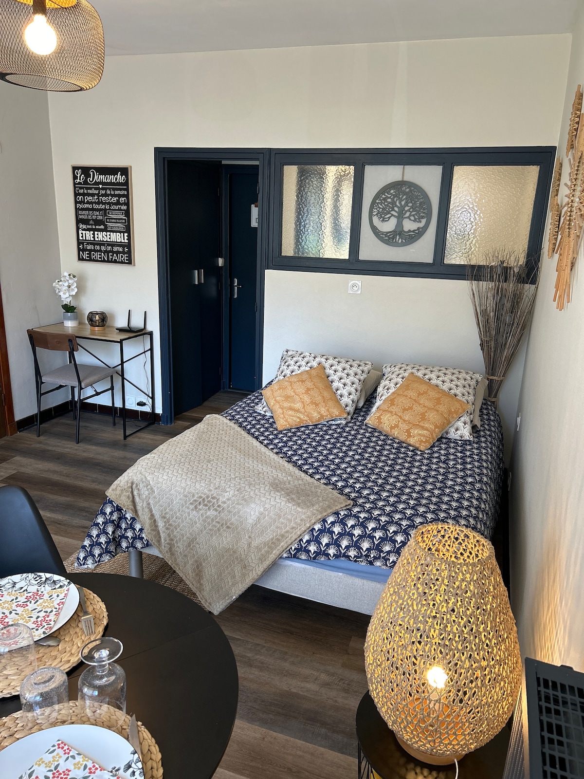 Loft neuf et moderne prêt à vous recevoir. 2 chambres cosy qui vous séduiront pour une nuit ou plus dans cet appartement de style. Magnifique terrasse pour vos petits déjeuner ensoleillés. cours intérieure/sécurisée pour les 2 roues uniquement L'entrée principale dans le patio est partagé avec ma maison, mais reste totalement indépendante avec des escaliers.. Parkings gratuits à proximité immédiate. et Viarhôna à 20 mètres épicerie à 10 metres, 1 restaurant pizzeria etc
