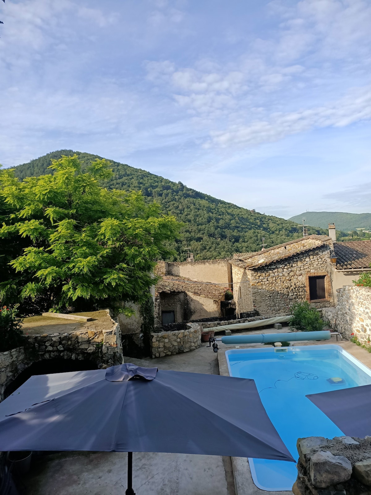 "L'ÉTOILE FILANTE" : gite chaleureux, 10-12 personnes : 5 chambres, 3 salles de bains, 3 WC, climatisation réglable jusqu'à 25° minimum 10 couchages + 2 lits pliants enfants possibles. Une grande piscine clôturée, chiliennes et transats pour se détendre. Une terrasse avec une grande table pour des repas extérieurs. Un jardin arboré avec jeux pour les enfants. Une belle vue sur la paysage paisible et verdoyant. Au calme, près du village classé de Mirmande et de Cliousclat, village potier.