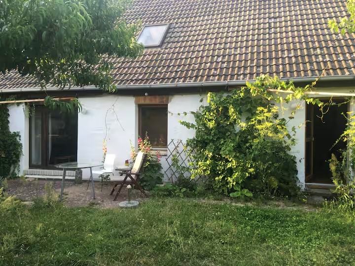 Neben einem alten Pfarrhaus haben wir ein kleines Nebengelass individuell für uns, für Freunde und Gäste ausgebaut. Manches ist modern, anderes hat noch den Charme vergangener Zeiten. Vieles erscheint uns stimmig, einiges ist noch im Werden. Nix ist also Standard. Was noch nicht von uns bedacht und für Gäste sinnvoll ist, kann meist schnell ergänzt werden. Das Häuschen ist umgeben von einem naturbelassenen Garten an der Ackerkante, liegt also in einem kleinen, landwirtschaftlich aktiven Dorf.
