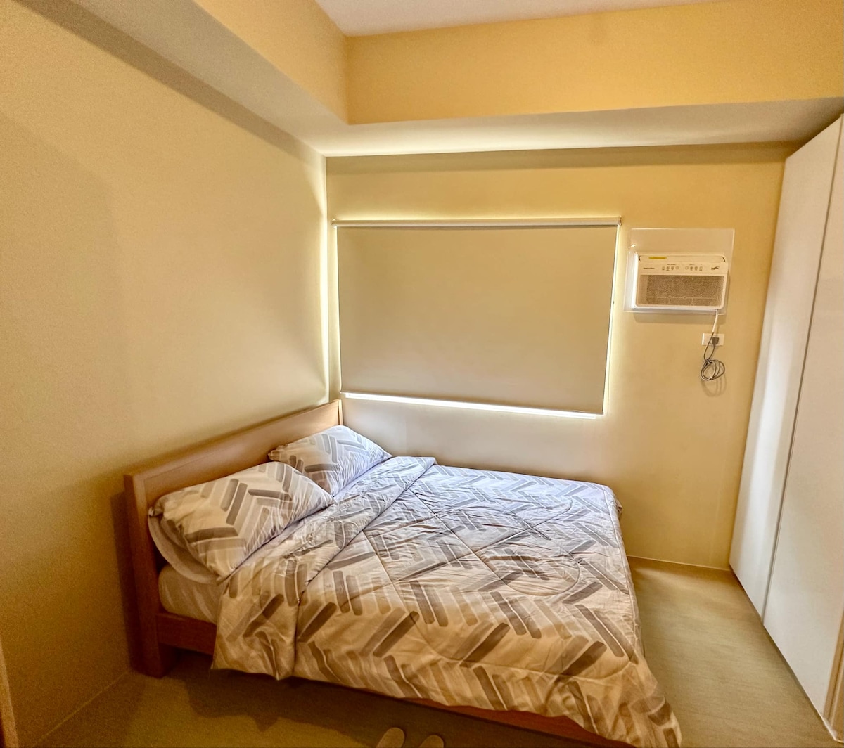 Our studio unit is located on the 21st floor, offering a stunning city view. The space includes a Full Double Bed (sleeps 2), extra double foam (sleeps 2). It has a compact kitchen equipped with a refrigerator, microwave, cooking wares, and a range hood. The living area features a sofa, cable TV, and fast Wi-Fi. The bathroom includes a hot shower, towels, and guest essentials. The space is cozy, modern, and designed for comfort, making it perfect for both short and extended stays.