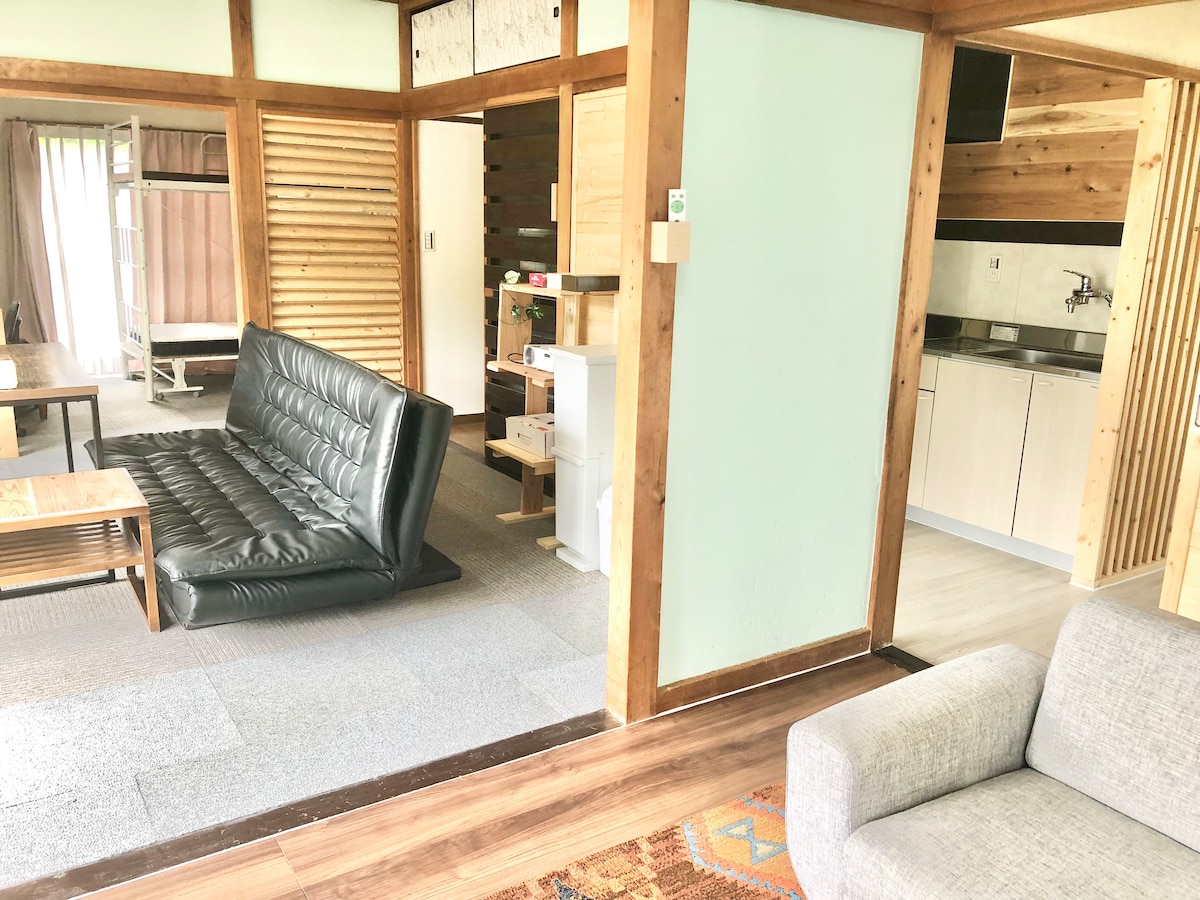 東京から2時間、熱海・伊豆への観光拠点に最適! 築50年の民家をホスト夫婦がセルフリノベーションして宿にしました。 30年前に増築された別棟が滞在スぺースです。 別棟のお部屋と母屋(ホストの家)は屋根でつながっていますが壁で仕切られております。 玄関、シャワー、トイレ、キッチンも別にあり、外出は自由、プライバシーは守れます。ホストも隣に住んでいるので、地元ならではのサポートもできます。 木々の揺れる音、鳥や虫の声を聴きながら、ゆっくりとした時間をお過ごしください。 ■有料オプション ①BBQグリル 3,000円 / 1回 ガスタイプの為、炭は不要。ダイヤルを回すと簡単に着火できます。 ②薪ストーブ 1,000円 / 1回 11月〜5月までの期間 ③薪サウナ 2,500円 / 1人 2名から、水着着用必須 ※オプションをご利用の場合はご予約時にお知らせください。 ※全てのオプションは15:00〜21:00までが利用時間です。 ※火器の持ち込みはご遠慮ください。