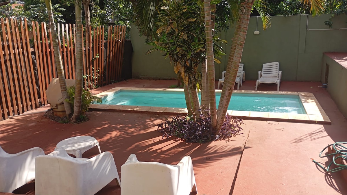 Transfers from the airport at an excellent price. The apartment is very spacious. The bus that goes to the falls passes the front of the house. Breakfast is optional (paid separately). Smoking is allowed only in the garden. Thanks to its very safe area it is a fabulous place to go for a walk. There is a supermarket in front. At about 700 meters there is a beautiful place called the three border where you will see Brazil and Paraguay