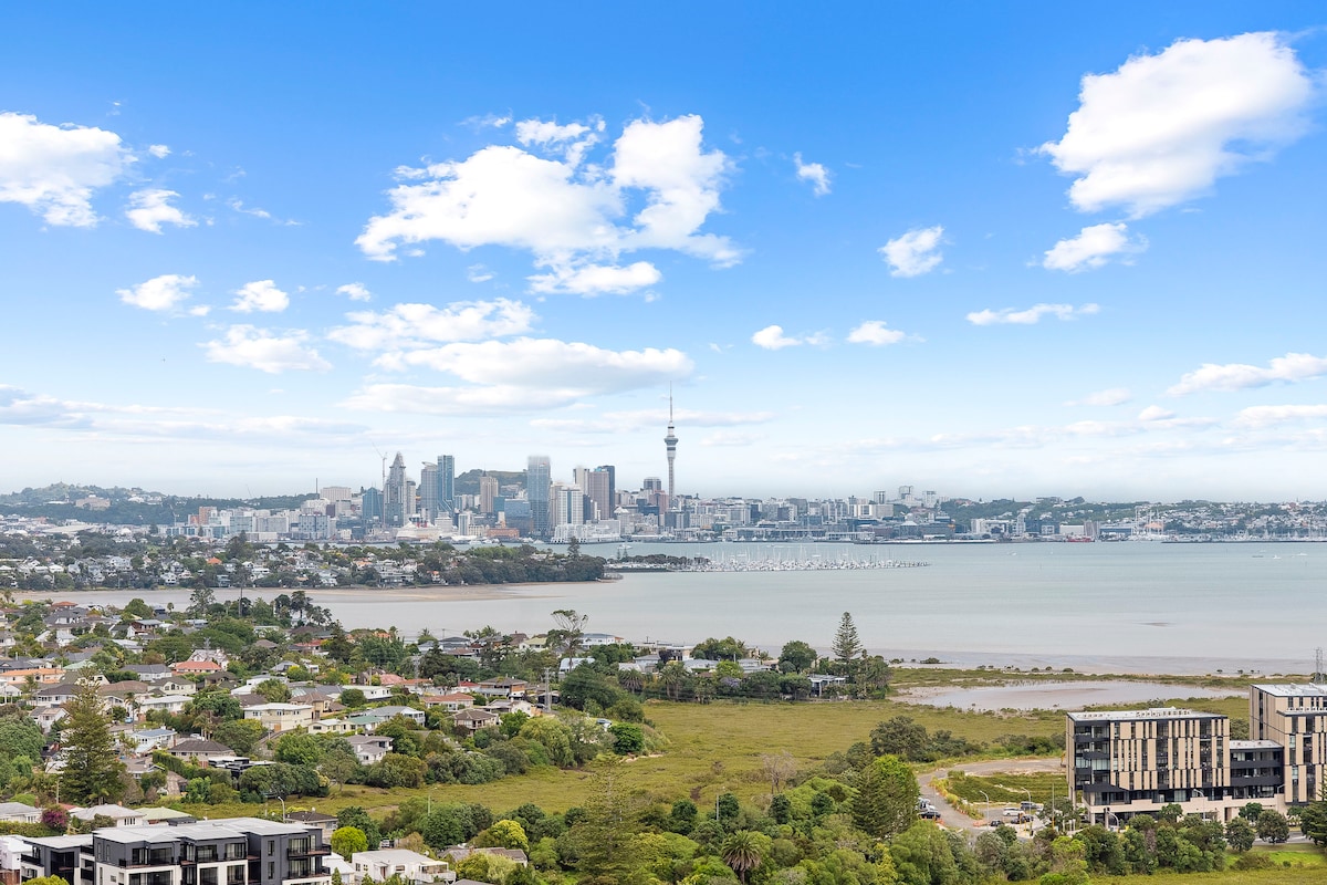Modern apartment with stunning view from the living area. Large sunny deck with BBQ. Views to Rangitoto and Auckland City. Quiet and private. Walk down the drive to the stunning Arkles Bay beach. Close to movie theatre, supermarkets, cafes and fabulous Whangaparoa beaches. Also close to Weiti river. Ideal for all water sports.