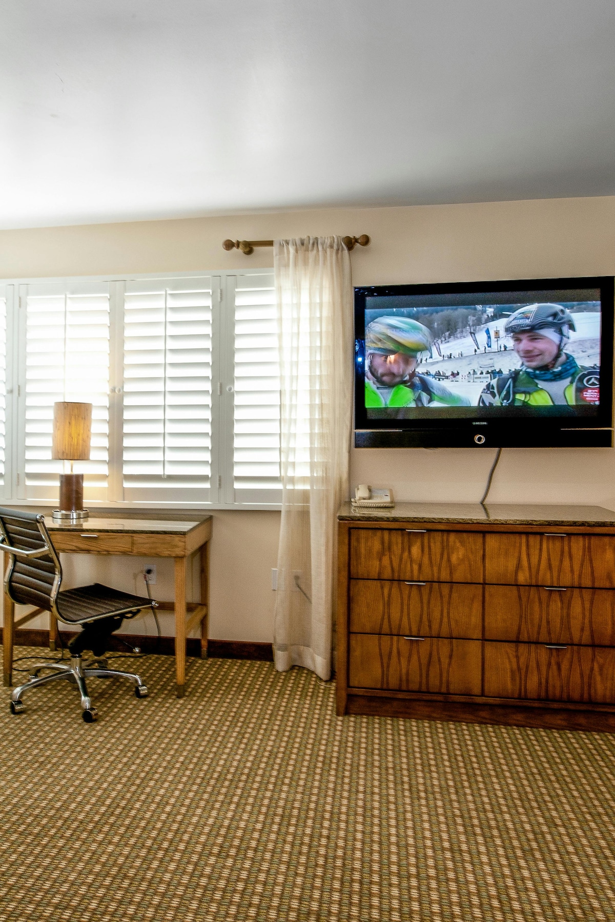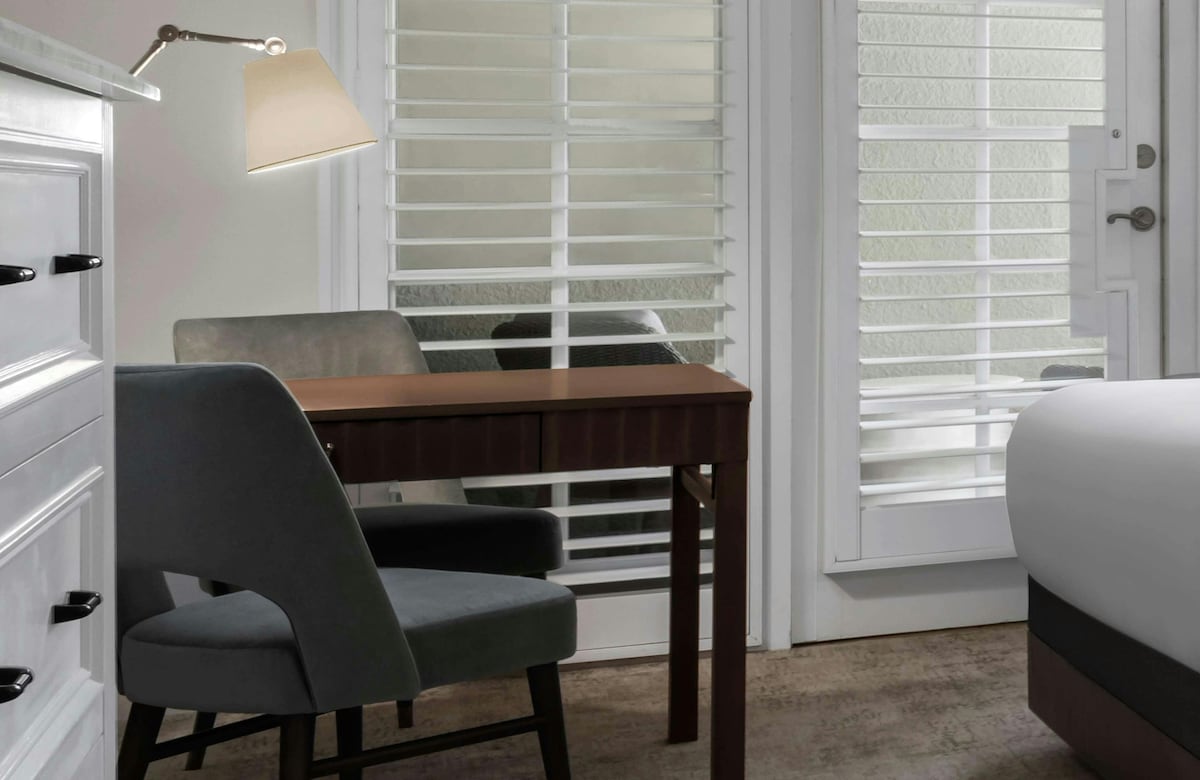 Enjoy the expansive comfort of a king-size bed in the Z King room, perfect for sharing or stretching out solo. Stream your favorite shows on the 43" HDTV with high-speed WiFi, and unwind in European-style double duvets, oversized towels, and micro-fiber bathrobes. Indulge in Tommy Bahama bath products and start your day with unlimited Keurig coffee and bottled water. This room blends playful luxury and relaxing amenities for a truly memorable stay.