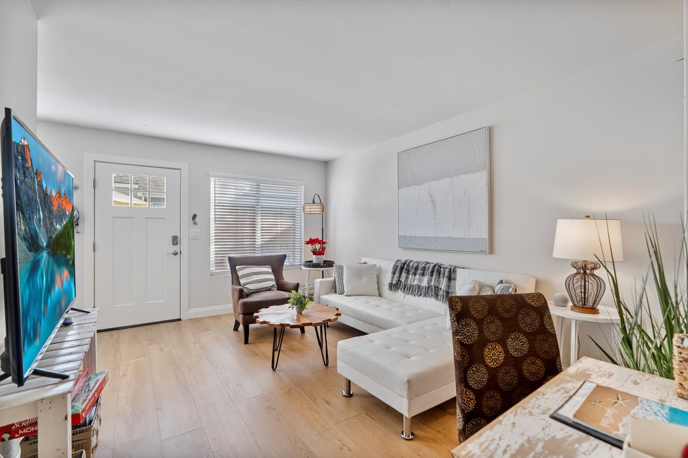 Enjoy the ultimate comfort in this beautifully remodeled condo in Pacific Beach. Smart TVs in every room, flooded with natural sunlight, refreshing ocean breeze and the perfect location— just two blocks from the bay beach, playgrounds, beach fire pits, and the boardwalk. The vibrant main street of PB (Garnett Ave) and the ocean are less than a mile away. Provided are beach chairs, towels, surfboards and boogie boards for you to use. Beds are new (2023) - 1 memory foam and 1 hybrid.