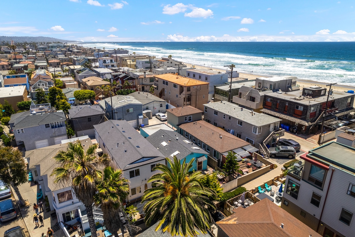 Amazing 3-Story Home in the Heart of Mission Beach 30 steps off the Beach. Prime location. Between Belmont Park and Pacific Beach. Walk to restaurants, bars and cafes. Watch and Listen to Waves from all Rooms and Bedrooms. Privacy- 1 house off the Famous Boardwalk. 2 Upstairs Bedroom Suites with Private Bathrooms and Balconies. 3 Decks Overlooking the Ocean. 270 degree views of city and bay too. Central AC! Fire Pit Lots of Parking- 2 car garage, 1 car carport, and parking spot in front.