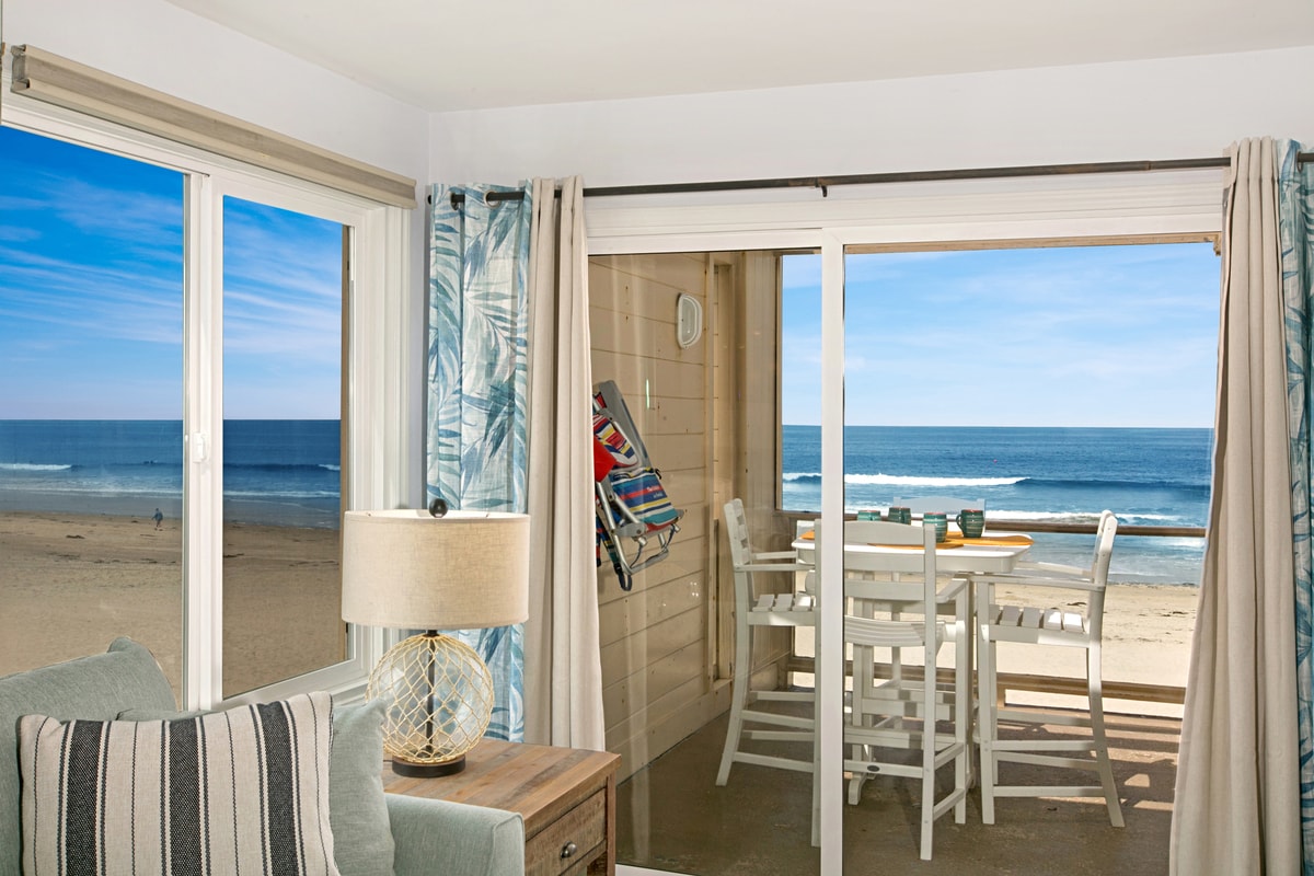 It's all about the location! Walk right out to the beach and boardwalk. Spend your days on the beach and walk to everything--Mission Bay, bars, restaurants, Crystal Pier, Belmont Park, etc. Leave your car at home because finding street parking can be difficult. Our second-floor studio is perfect for one person or a couple. Unplug for a few days or a week. Enjoy the unobstructed ocean view and beautiful sunsets. Our apartment has a separate kitchen and bathroom and rustic wood paneling.