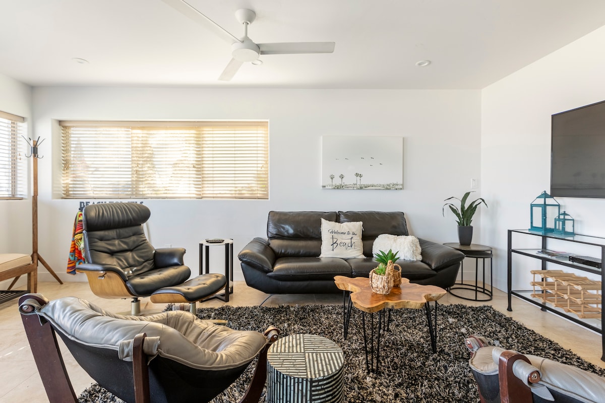 Renovated Modern BaySide Condo, 1 block from the Beach, Mission Bay, Belmont Park, restaurants, rentals, & beach activities Featuring 1 bedroom with a Queen size bed with a room AC, 1 bathroom, comfortable seating in the living area with fan, fully stocked kitchen with stainless steel appliances & everything else you would need to prepare a gourmet meal + Separate dining area with seating. Outdoor seating area with BBQ grill and a fire pit. Suitable for 2 adults only.