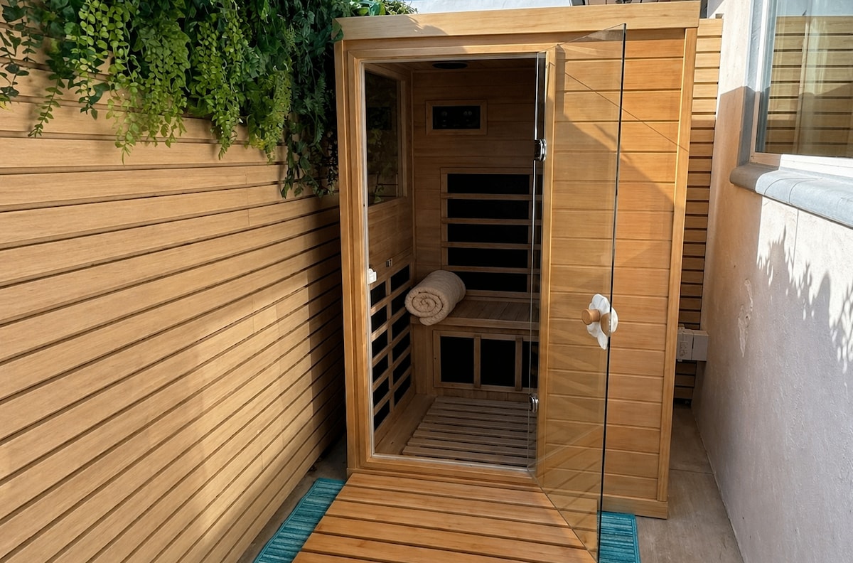 私人桑拿房、免费海滩用具、2分钟到海滩