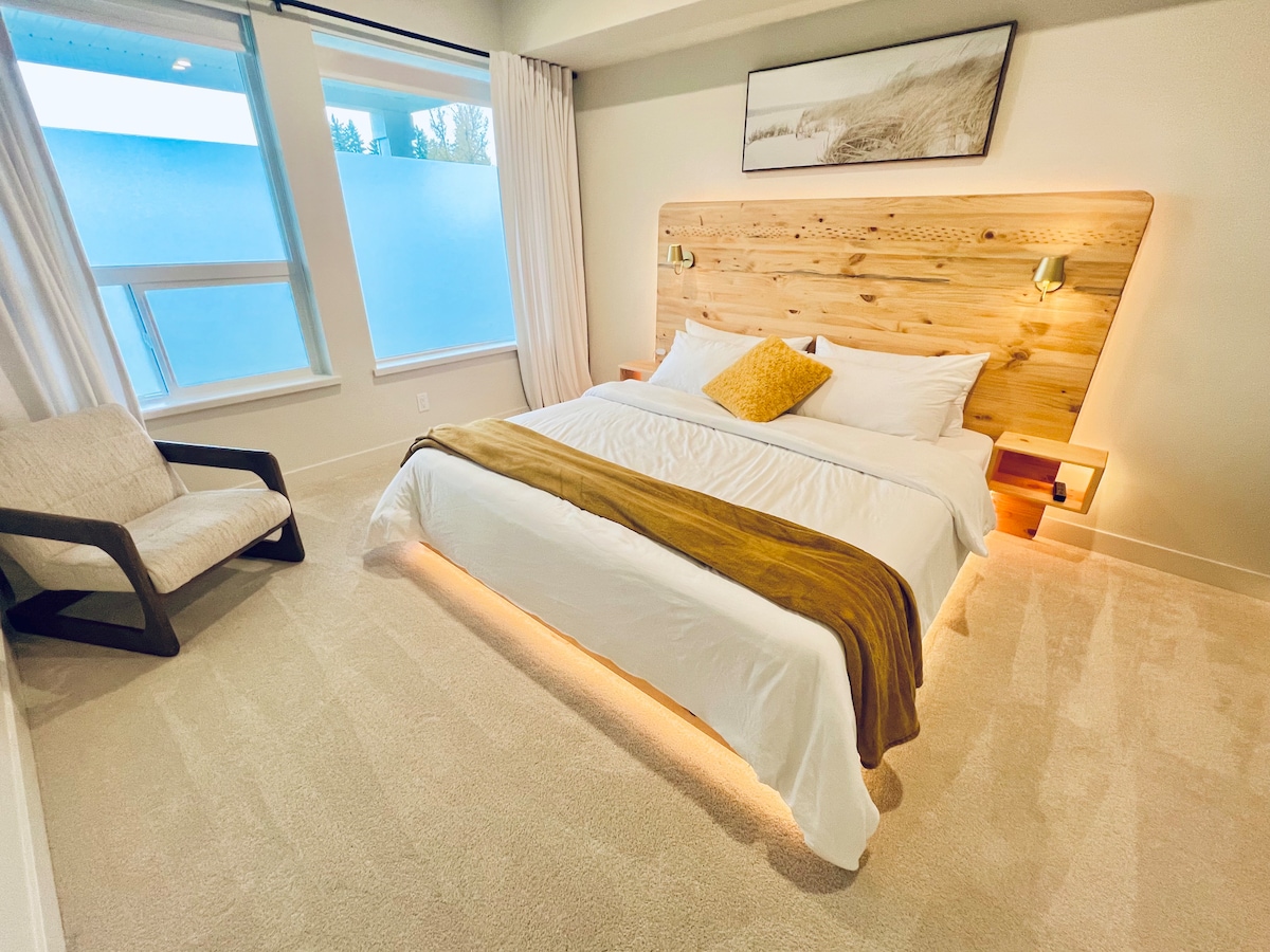 Enjoy a quiet and relaxing vacation in this modern, bright, and brand new 1-bedroom suite. Only a three minute walk from downtown Mission, this coach house is situated ideally for guests who enjoy privacy while also being close to many amenities, including coffee shops, restaurants, and boutiques. This suite is also located a 5-minute walk to the West Coast Express, so you will have easy access to downtown Vancouver on weekdays. Added bonuses: A stocked kitchen and washer and dryer!
