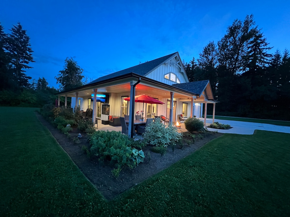 Modern luxury on the beach with 180 degrees of oceanfront sunset and mountain views! 24 feet of fold-back doors open to the 40’ beachside deck.. feel relaxation take over as the sound of the waves roll in. Spa-like bathroom with a 6’ x 5’ shower for two, complete with dual shower heads and oversized rain-shower in the center. After sunset, watch a movie on the 84” 4K screen in full surround, or grab one of our board games and gather around the table with whole-home music of your choice.