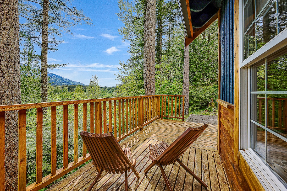 Newly built, contemporary Mt. Baker Ski area cabin in great neighborhood. Enjoy a wood fire in the spacious, open concept living room/kitchen. This private, comfortable and cozy cabin is finished with quality materials and will make you want to come back again and again, we didn't want to leave. The bedroom features a king size memory foam bed that will remind you of a luxury hotel. The bathroom bathroom boasts a custom tile shower and heated floors to keep your feet cozy in the morning. In the kitchen, we chose all stainless steel appliances and have stocked it with quality cookware so you can cook your own gourmet meals. Or, you can go to one of the local bars/restaurants in the small town of Glacier, just up the road. In the living room, there is a wood stove that keeps the entire cabin super warm with minimal effort and for entertainment, there is a digital media player with tons of movies already loaded (or you can bring your own on a USB drive) and an ipod dock for music. In the summer, enjoy our large deck after a solid hike or mountain bike ride and if you have relatives with a camper, we have a perfect level parking spot with power and water. For additional guests, the couch folds into a very comfortable full size bed with all of the appropriate bedding. We do want to keep the guest number to 4 people so the place stays nice for everyone. There is a washer and drier for your laundry needs, as well as a drying rack by the wood stove for your mountain gear. in the winter, Glacier is great for downhill skiing, world class powder at Mt. Baker, cross country skiing, snowshoeing and snowmobiling. What people are discovering more and more, is all of the recreation possibilities in Glacier in the summer. Hiking, Mt. Biking, rafting, kayaking and dirt biking are just the beginning.