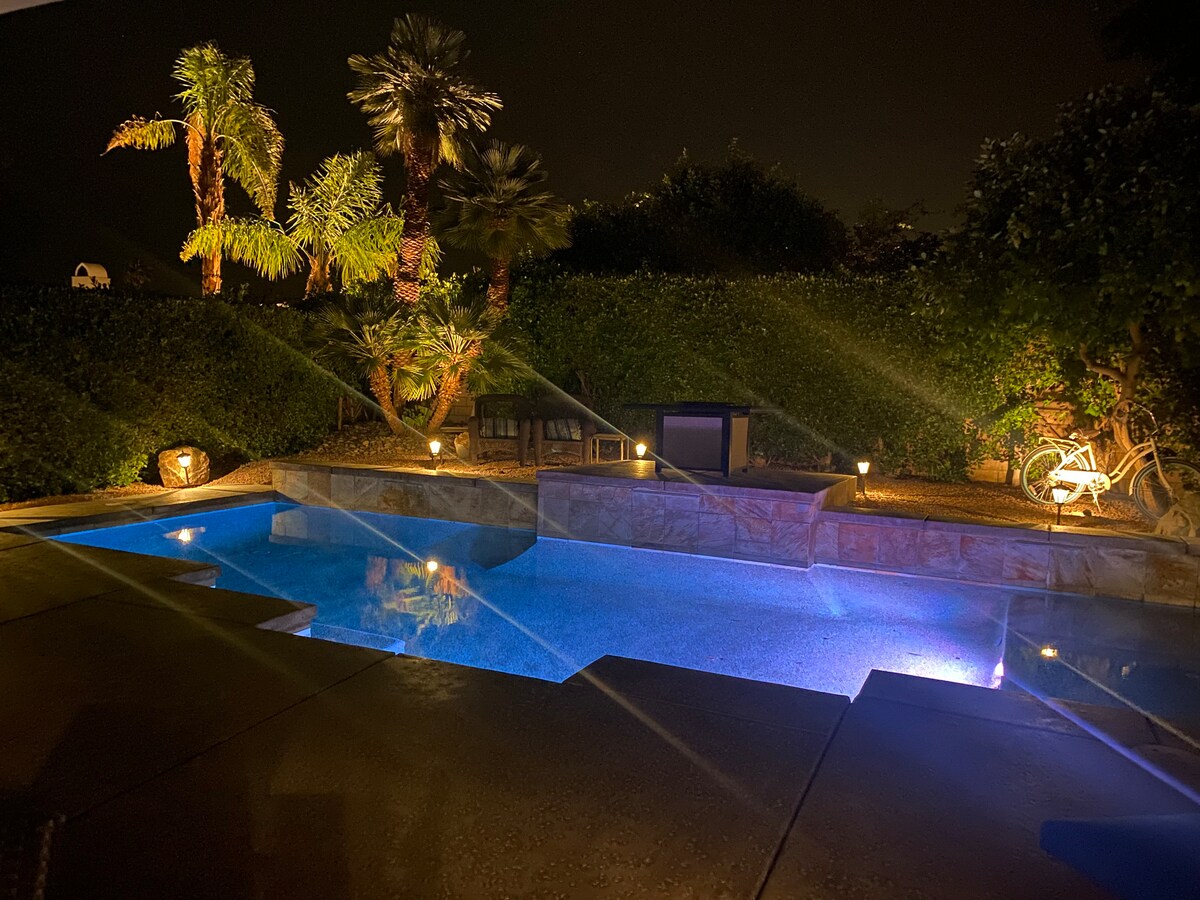 -> 5-mins to downtown, airport, casinos, golf courses, stores! -> Featured on Business Insider as top Airbnb in PS! -> Completely remodeled with high-end fixtures and features! -> Fully equipped chef's kitchen -> Large 7ft deep pool and 10-person spa -> Outdoor fire pit -> Patio with BBQ -> High speed wifi with internet enabled TVs -> Fresh linen, towels, toiletries and essentials provided -> Washer & Dryer -> Professionally cleaned every time -> Parking for 3 cars City ID #4475 Permit #7637