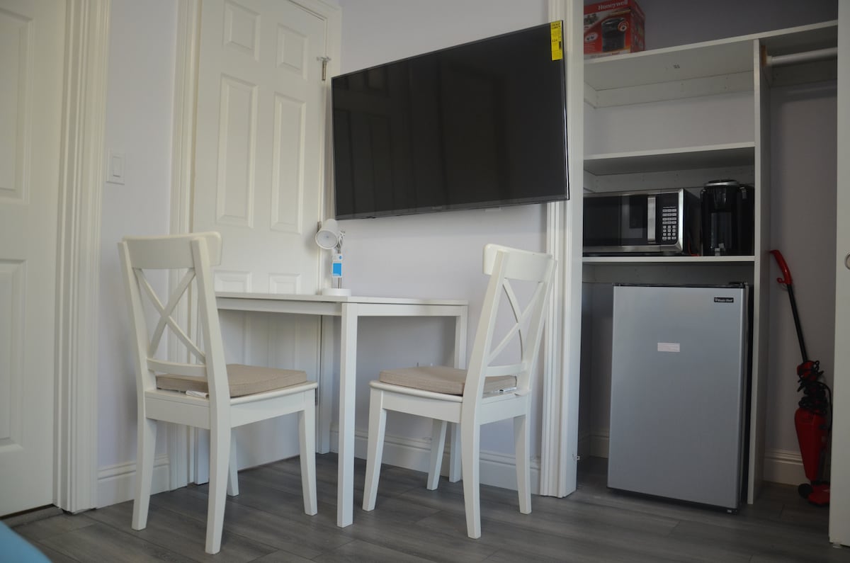 Have peace of mind when you stay in our upstairs bedroom, and only share the bathroom with one more guest. You will have your own 43" Smart Samsung TV, and a small desk fit for a laptop. We'll provide all basic amenities during your stay. You are also welcome to share all common areas and a fully loaded kitchen (Please light or infrequent cooking only, if you plan to cook every day please ask us before booking). Street parking is free and should be available throughout the day.