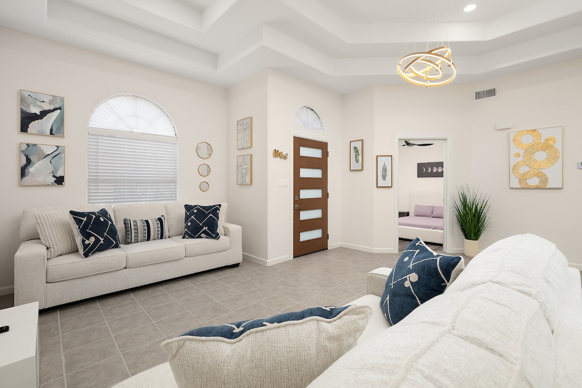 Feel at home in this clean and luxurious property with high-quality furniture, sheets, pillows, and mattresses. The kitchen comes fully loaded with cookware, dining ware, utensils, and anything else you may need to cook except the ingredients! You can also enjoy the state-of-the-art whole-house water filtration system. You will instantly notice the difference the second you step in the shower. The property is about 10 minutes away from the main shopping centers and the airport. Enjoy your stay!