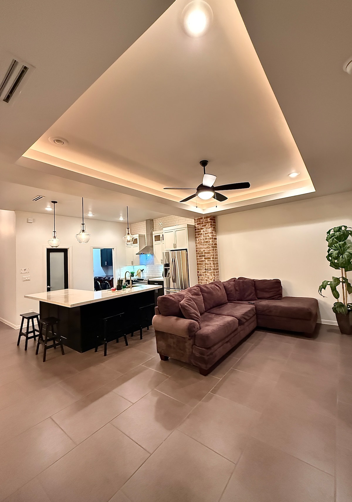 Stylish Stay for Groups, Business Trips, Families & Medical Visits Enjoy a one-of-a-kind property in a prime location — just minutes from the airport, medical district, shopping mall, Target, and the convention center. This modern home features a spacious open-concept living and kitchen area, a massive 100-inch screen for movie nights, and a covered patio perfect for outdoor dining.