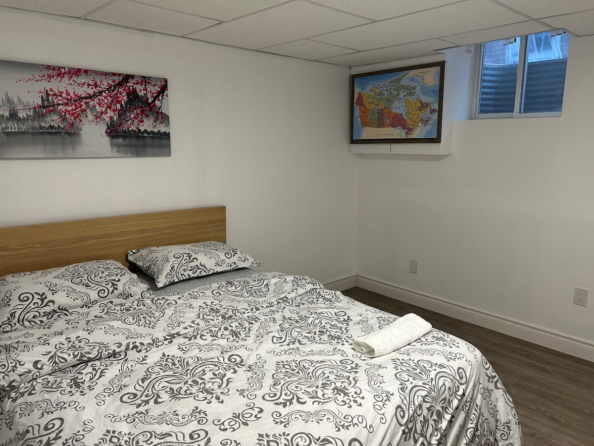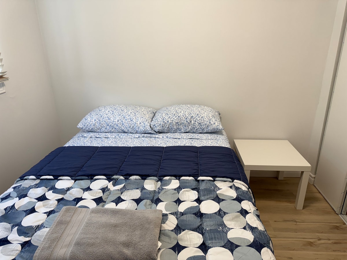 Cozy and spacious basement suite in Port Credit. Separate entrance, Private kitchen&3-piece bathroom. The bedroom includes a comfortable queen bed and desk, perfect for relaxing or working. Fast Wi-Fi and driveway parking are included, and laundry is available on the property. A short walk to the bus stop provides easy access to Port Credit GO Station and Square One, with Sherway Gardens and Dixie Outlet nearby. The space is carefully cleaned and thoughtfully prepared for a safe, welcoming stay.
