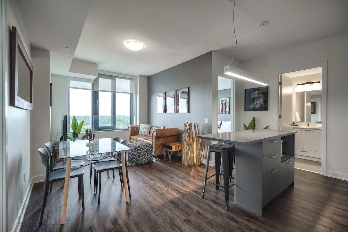 Welcome to this modern, sophisticated, and fully furnished 1-bedroom apartment located in the heart of Mississauga’s Square One district. Features 65” living room TV, bedroom TV, full kitchen with cookware and basics, washer/dryer, and fast Wi-Fi. Enjoy building amenities like a gym, secure fob access, parking, grocery store on-site, and close proximity to restaurants and LCBO. Just 15 minutes to Pearson Airport and 25 minutes to downtown Toronto attractions. Perfect for a couple & small groups.
