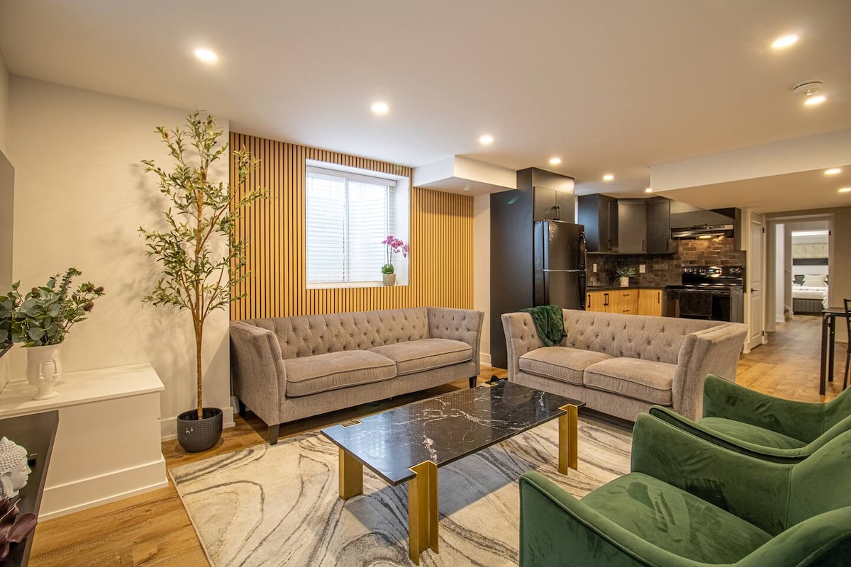 加拿大风格市中心公寓,配备加大双人床,免费停车