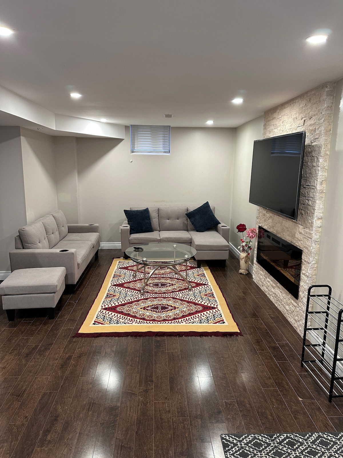Tastefully Decorated Modern Spacious Studio Basement unit in the Heart of Mississauga, Ontario, Canada. Unit has Pot lights, wooden floor, centrally air condition and heating with private entrance to the unit. One Outdoor Parking Spot available on the driveway. Coffee and high speed WiFi internet is complimentary. Laundry available for extra charge of $15 per load. For 2 persons you are not allowed to open Sofa Bed without permission of the Host.