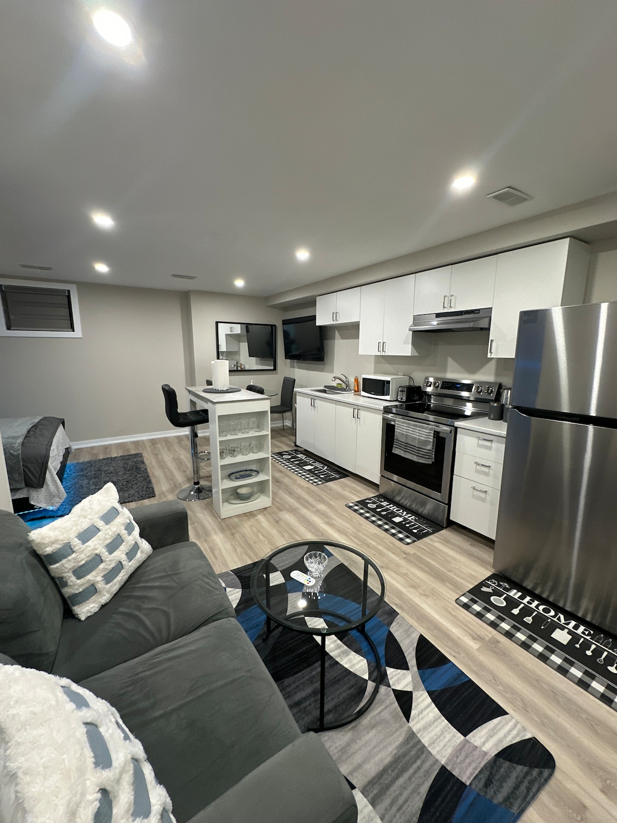 Relax at our new Modern private studio in Brampton with free parking, fast WiFi, and a private entrance. Perfect for solo travelers, couples or business stays. Close to restaurants, and public transit. This cozy studio is located in a quiet, safe neighbourhood equipped with all the comfort and amenities you need with a beautiful open concept ambiance and a full kitchenette if you love to cook! Welcome to our newest Airbnb in Brampton! We look forward to hosting you for a warm and inviting stay!