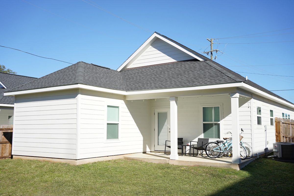 ☀️Welcome to The Sunnyside Suite, a luxe and stylish tiny home situated in the heart of Gulfport. This brand new home is perfect for those seeking comfort, convenience, and cleanliness. This high-end home features a plush queen bed, full kitchen, 50 inch TV, and a steamy rain shower. Step outside into the quiet and private yard, beautifully lit by warm string lights. Located near restaurants, casinos, and beaches, the Sunnyside Suite is the ideal choice for a tranquil and unforgettable getaway