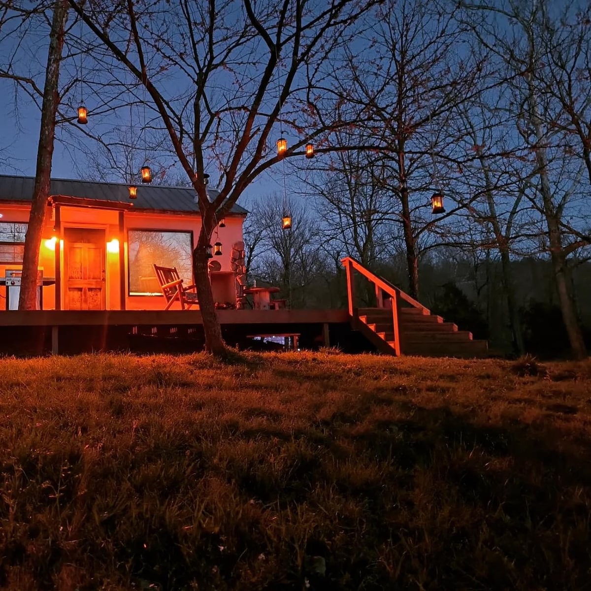 Welcome to Pedal and Perch, a custom-designed and built accessory dwelling cabin just minutes from downtown Bentonville, AR, Walmart HQ, and miles of incredible mountain biking. Enjoy a serene setting that tucks you among the trees and makes you feel like you are staying in your own treehouse. The cabin features a custom kitchen, one bathroom, a queen bed in the loft, a pullout sofa on the primary floor, and your very own outdoor bathtub looking in to the valley below.