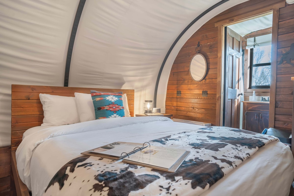 Stay in our largest dome, perfect for families or groups. The Exquisite Bubble features a private ensuite with a clawfoot tub and sleeps up to five. Relax in comfort while enjoying access to the Olympic-length pool, hot tub, outdoor kitchen, and dining pavilion. With its spacious design and serene setting in the Sam Houston National Forest, this dome is ideal for gatherings, celebrations, or a luxury escape close to Houston.