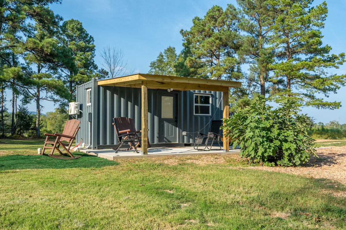 Located 25 min. East of Little Rock, this Tiny House is a one of a kind stay! The red custom tiny container house was hand designed & built by the owner. It is located less than a mile from I-40 & Arkansas HWY 70. Nice elongated front porch with peaceful overlook of ponds. Entire house to yourself. Not only will your stay be 'in the air' but Breakfast will be included in your stay(if desired). One full couch, tv, indoor fireplace, one bunk bed & everything accommodable for your stay is here!