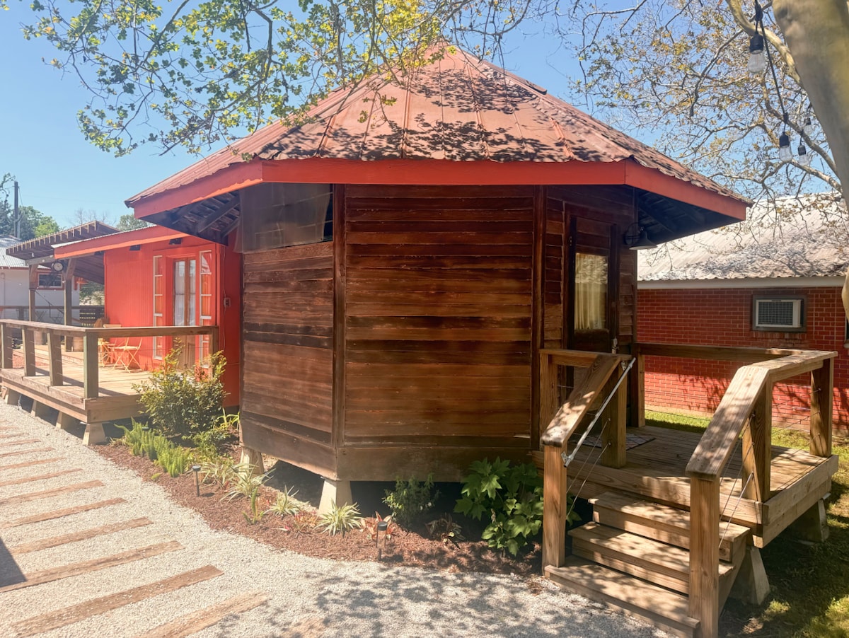 The Blue Train Car is a gem at the Train Wreck Inn - a retro train motel in Grand Coteau, LA! Vibrancy and efficiency make this unique stay on a retired mail car an unforgettable getaway. Inspired by filmmaker Wes Anderson’s infamous color palettes, this space is complete with a record player, antique glassware, and a custom kitchen. Enjoy our courtyard’s hammock and seating areas, or take a stroll to the cafe and shops. The Blue Train Car is ready to take you on your next adventure in style.