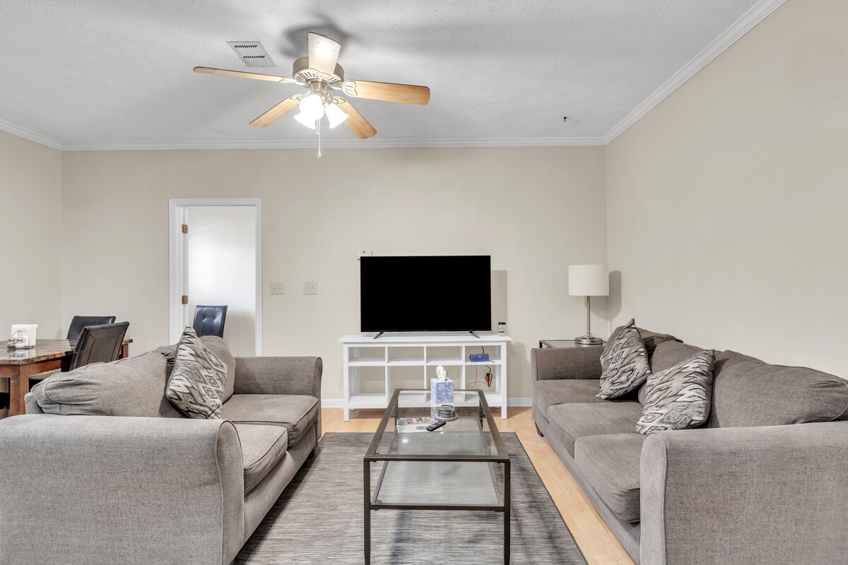Fully furnished 1 bedroom, 1 full bath unit with complete kitchen housewares, bedding and bathroom accessories, washer/dryer, 46" Smart LCD HDTV in each room, all utilities paid, expanded cable w/,WI-FI Internet, Netflix ,use of balcony, A/C, and much more. Includes 2 reserved parking spaces. Conveniently located on Main St in Downtown Columbus. Walk to all the great restaurants and night life downtown has to offer.