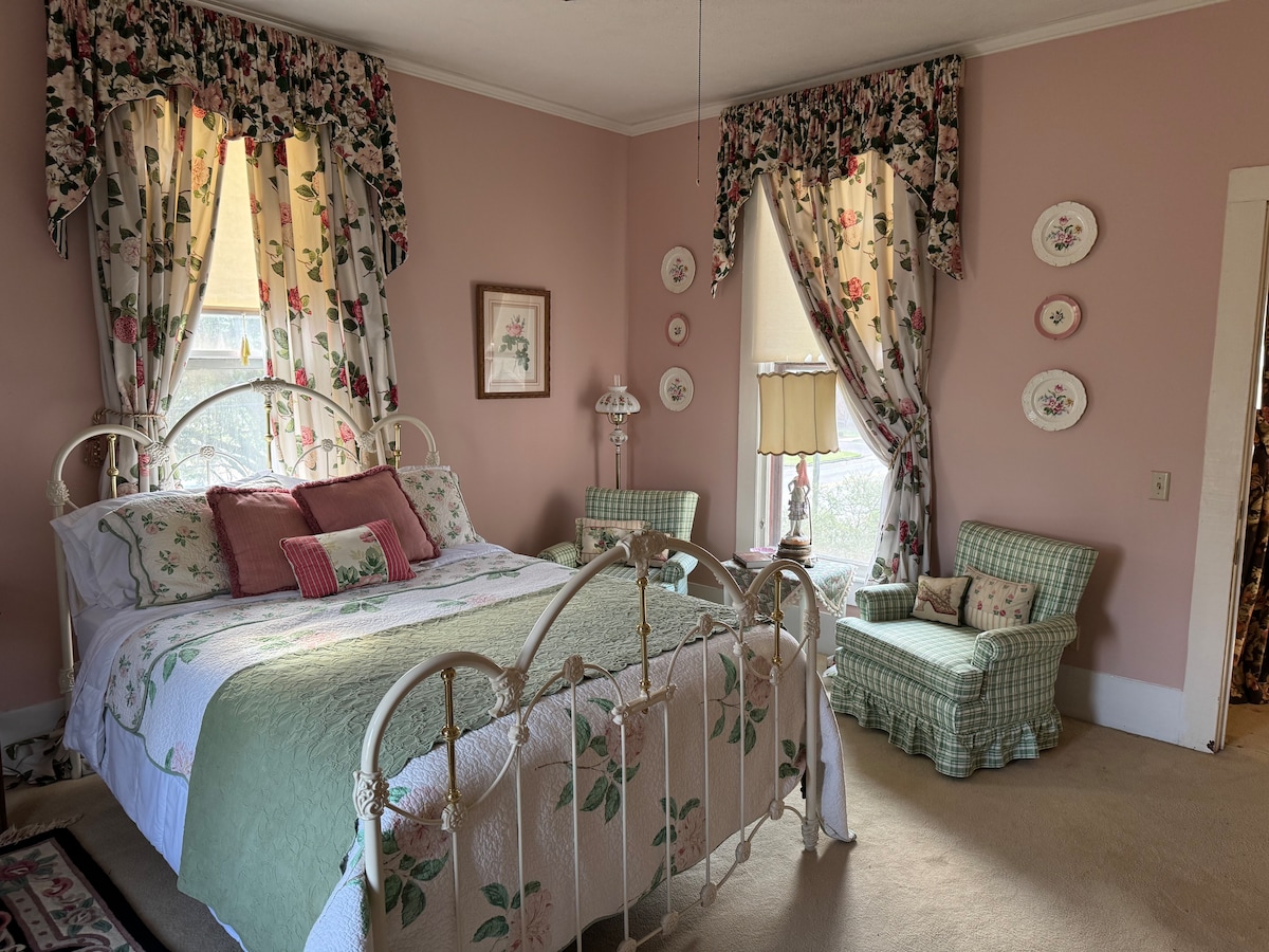 Bottletree is one of eight total bedrooms at the Clark House Inn, but one of three in our cottage. The cottage is located within steps of the main house. The room has a private entrance, as well as private bathroom with shower/tub. The room is complete with a writing desk and television, and seating area on the cottage porch. Guests also have access to the common rooms in the main house, as well as complementary continental breakfast each morning.