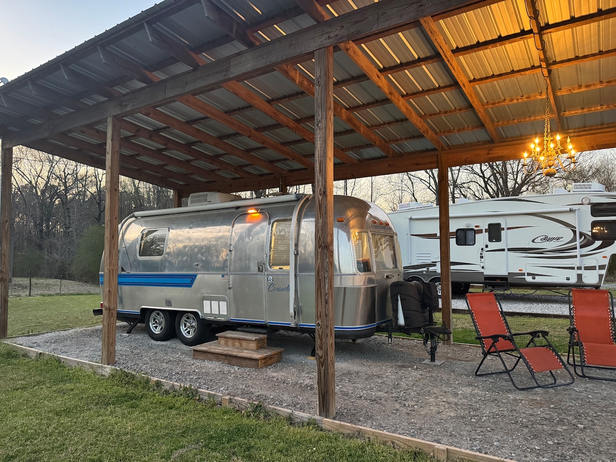 Glamp in an iconic airstream nestled on our homeplace. Wake up in the country and enjoy the peace and quiet of the country while you take in the sunset. The kitchen is fully equipped. The bathroom is small but very functional. Nestled in the country, but convenient to town. Minutes from Dodson Farm and Hewlett Barn/The Stables Wedding Venue. Starkville was voted the best place to live in the south 2 years running. It has 2 twin beds and a futon couch. There is a $99 non-refundable pet fee.