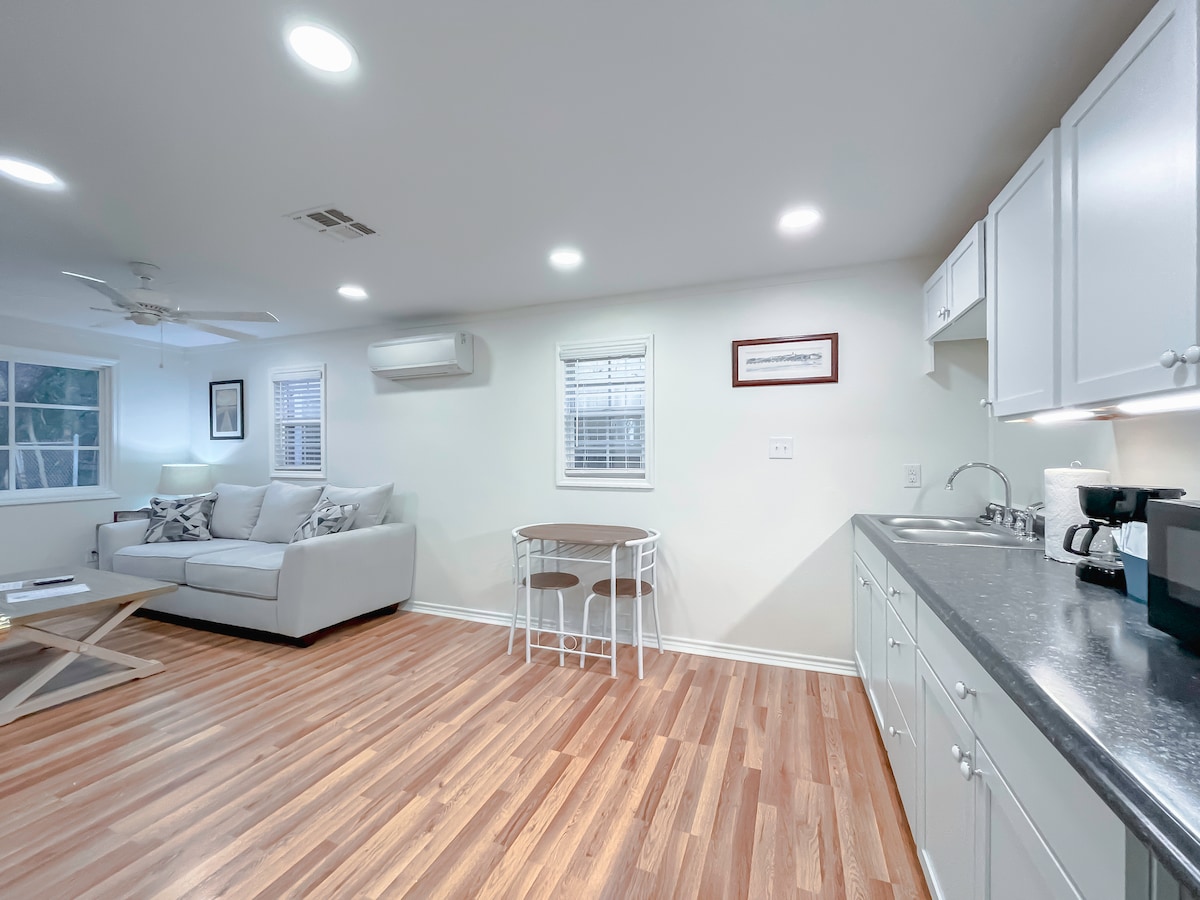Minimum age to check-in is 21. All guests must be over the age of 15 years old. The Villas at Ruella are four blocks from Old Town at 203 Ruella St. near cafes, restaurants, boutiques, and the beach! Unit 2R sleeps 2 guests with a King bed. Lounge by our crystal-clear swimming pool, enjoy complimentary high-speed Wi-Fi, streaming TV, a full kitchen, plus free off-street parking. Pets under 25 pounds are permitted and must be on a leash in common guest areas.