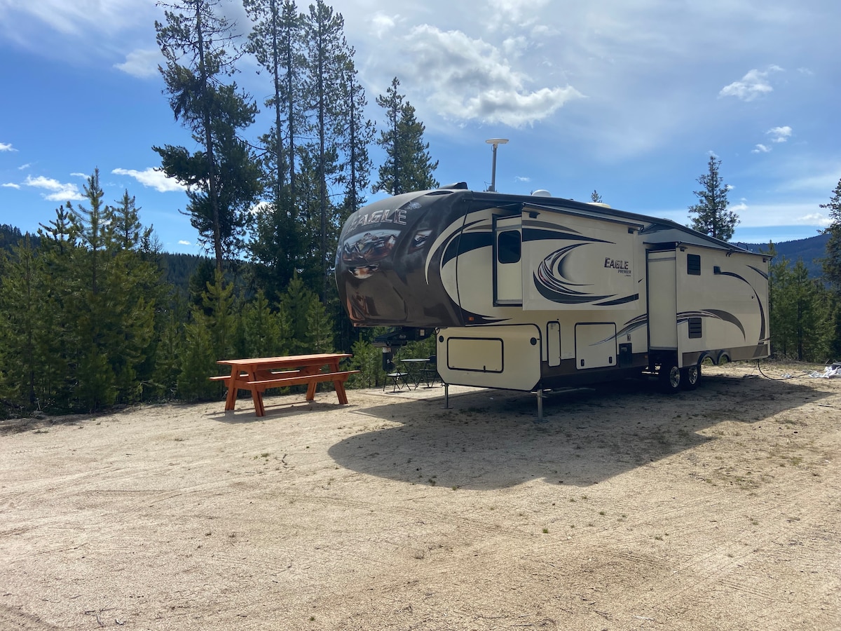 Reconnect with nature at this unforgettable escape. Private bedroom with queen, two fold down bunks, and all the amenities you need to enjoy a weekend in the mountains with the comforts of home. It includes outdoor chairs, a fire pit, picnic table and grill/smoker. We also provide a smart TV with internet access. Visit nearby holland lake or any of the chain of lakes minutes from the camper. This is an RV, it will be full of water when you arrive, but you will need to be aware of water use