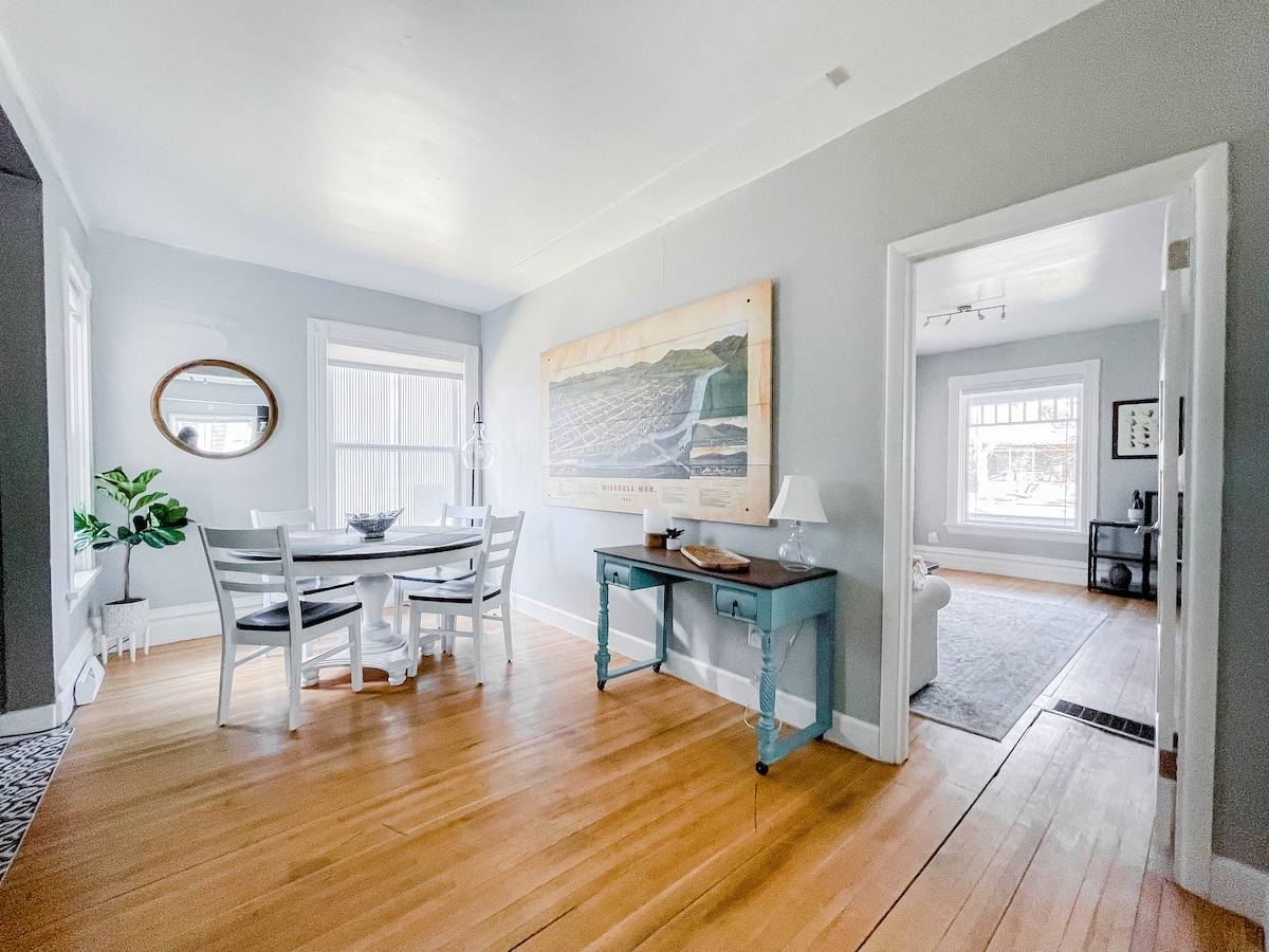 Recently remodeled 1920’s Missoula duplex. This unit features vaulted ceilings, exposed wood beams, lots of natural light and views of Mount Jumbo. The owner is an architect and carpenter creating many hand crafted details making this space truly unique. Located in Missoula’s historic Westside district with breweries, coffee shops, parks, and the Clark Fork River within walking distance. Downtown Missoula less than one mile away, MSO airport five miles away. A cozy and authentic Missoula stay.