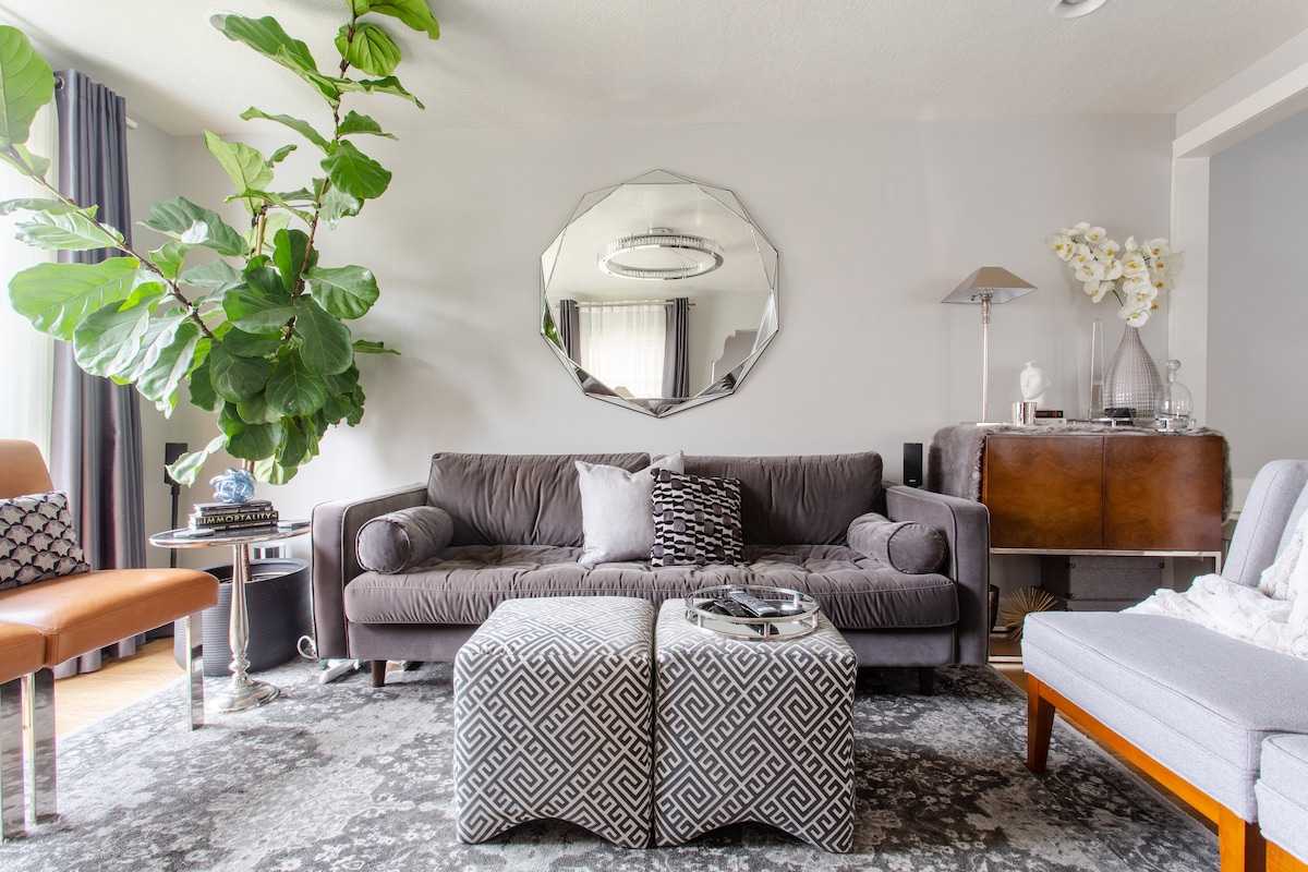 Enjoy the charm of fully-renovated 1950s family home, meticulously furnished to celebrate its mid-century roots. With a super-central location it's a breeze to explore Salt Lake. Find world-renown skiing and hiking up the Cottonwood canyons to the right, or turn left to explore downtown. Park City is just 35-minutes away via scenic Parley's Canyon. Or stay in — craft meals in a fully-stocked and modernized kitchen and cozy up by the wrap-around retro fireplace to relax after dinner. And if you're working remote, 200mbps 5Ghtz WiFi will make those video calls as smooth as butter. We wanted to make our ideal, luxury SLC getaway... and this is it! We completely renovated this 1959 house to give it the modern features we couldn't live without, while still keeping a timeless, retro style. This is for the entire, separate upstairs apartment, which features 3 bedrooms each with queen beds, and 1.5 baths – so it's perfect for the whole fam! Our favorite feature – the cozy, wrap-around fireplace...perfect for a warm night in while it snows. And the deep-soak tub is a close second. The place also has a new, modernized kitchen, separate washer and dryer, and of course dedicated private front & back entrances. You'll be able to access the property with a unique code on our keyless locks. Also please feel free to enjoy the big backyard! There's outdoor seating and a grill. Plus we have lots of grass to hang out, play catch, lounge, etc. Parking is on the street in front of the house. Please try to avoid parking in front of our neighbors if you can – there is room for 3 cars. We live in the basement with our own separate entrance, so most of the time we probably won't see you (unless you want to say hi!) That said, we're always just a message or knock away should you need anything. And if we're out of town, our co-host Celina lives just a few minutes away in case of emergencies. This upstairs unit of our home is in the leafy Salt Lake City suburb of Millcreek, located in a quiet residential neighborhood on a cul-de-sac with no through-traffic. Just off Highland Drive, its easy to access all Salt Lake has to offer. Get to the airport in 20 minutes, downtown in 15, and the canyons in 20. Plus the home is surrounded by restaurants and shopping, even with coffee shops within walking distance. Should you need anything, the hosts are nearby. You'll be close enough that you'll typically drive city and side streets to get everywhere. That said, the I-215 and I-15 freeways are 7 minutes away if you want to go farther faster. Plus local bus routes surround our home – A 5-minute walk to the nearest stop and you can get literally anywhere.