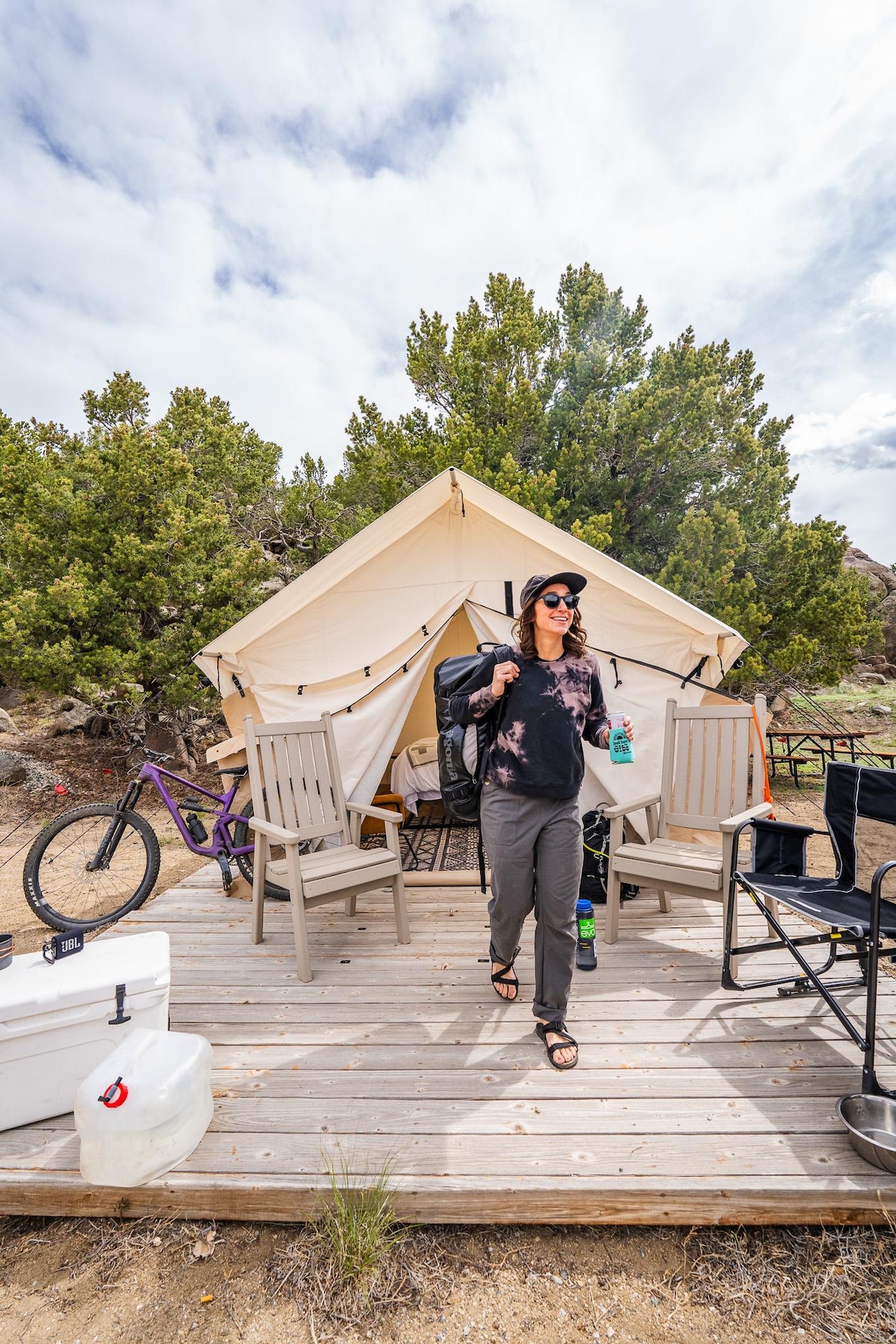 The Glamping tents provide an incredibly unique experience for the more adventurous travelers. You’ll have your very own intimate cozy tent that will feel like a home away from home. Your tent is equipped with a queen bed, twin bed, firepit and chairs, the tents do not have electricity. A centrally located bath house with 4 private units is used by all guests on the property. **THIS LOCATION IS 45 MINUTES FROM DOWNTOWN MOAB/ARCHES NP**
