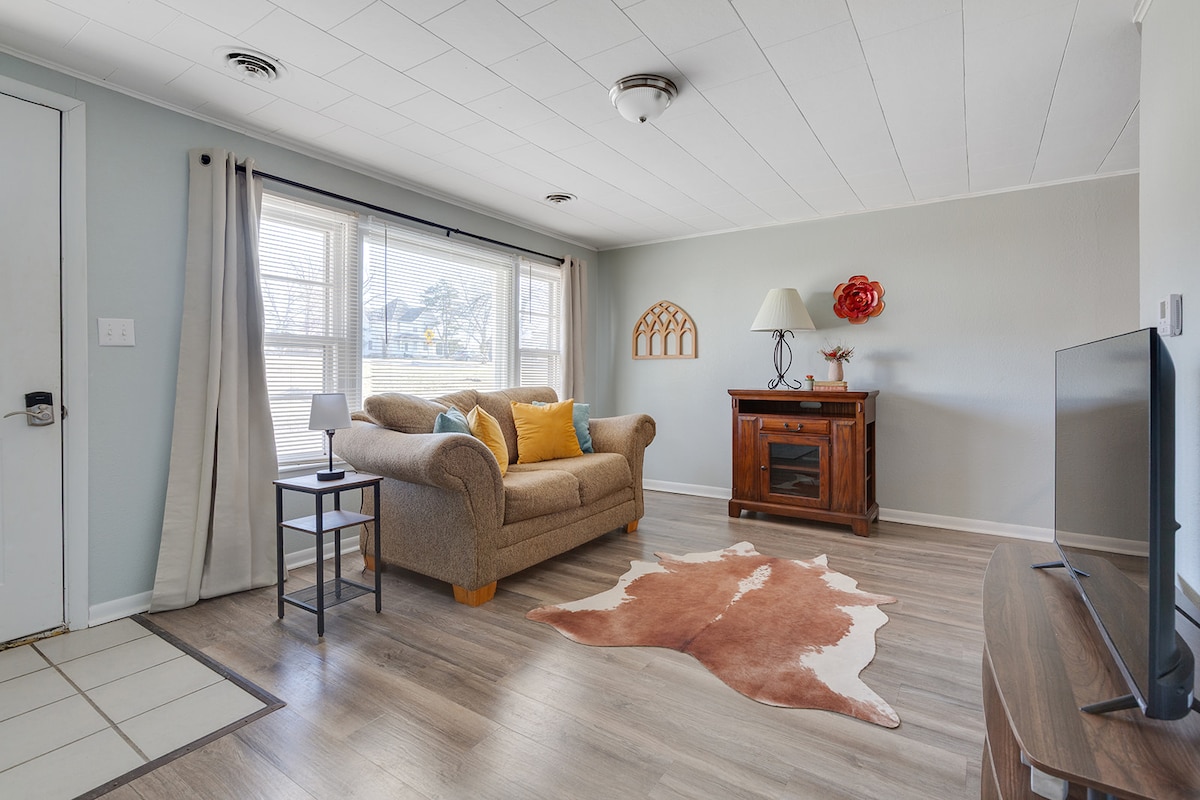 Welcome to Pop Luck's Guest Suite! This adorable gem represents everything you love about Old St. Charles. This cozy suite is just steps away from the heart of Main Street, restaurants, and all the action St. Charles has to offer. Pop Luck's is a charming one-bedroom, with an open and airy living room and kitchen. It has natural light and high ceilings throughout. It's farmhouse cottage decor makes for a relaxing place to rest. Also, check out our sister suite The Ella Rose, right next door.