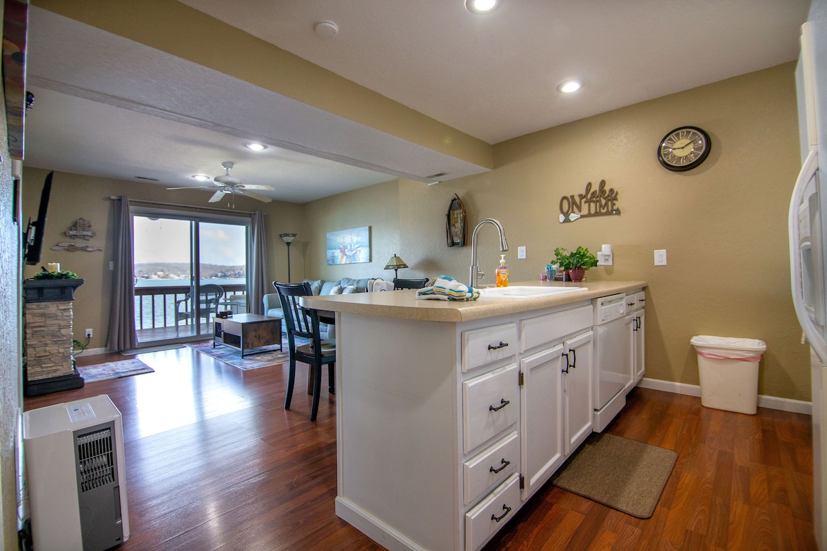 AMAZING VIEW lake front condo in Lake of the Ozarks. Relax in updated 2 bedroom condo (1 King Bed, 1 Queen Bed), 2 queen size sofa sleepers(accommodations for 6), kitchen updated in 2020 with all your needs, the fireplace makes it cozy for the cooler days! Condo is located close to famous Bagnall Dam Strip, shopping, and Restaurants. Condo is a great place to spend time with your family & friends swimming, boating, grilling, playing games, & fishing, the lake is just steps away. NO Pets!