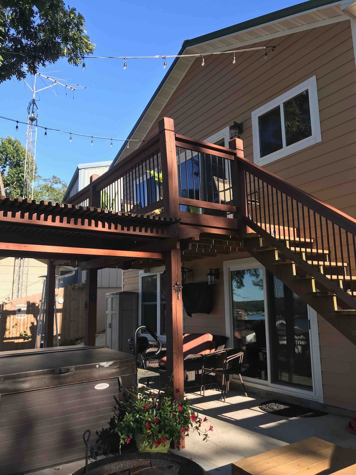 Come and enjoy a peaceful getaway in our quiet cove on Table Rock Lake. Relax in our guest house with a private deck, hot tub, outdoor shower, fire pit and beach at your back door! Enjoy swimming or fishing in the cove, sunning on a paddle board or kayaking at sunset. Paddle boards and kayaks included! Welcome family time relaxing on the hammock listening to the water lapping, barbecuing on the deck or chilling by the fire pit (firewood included). Come rejuvenate in nature's beauty!!